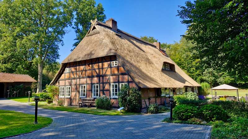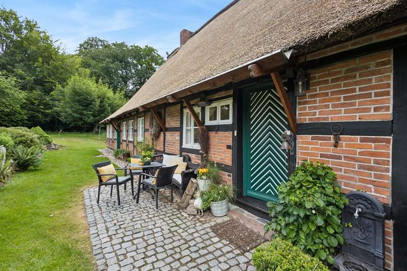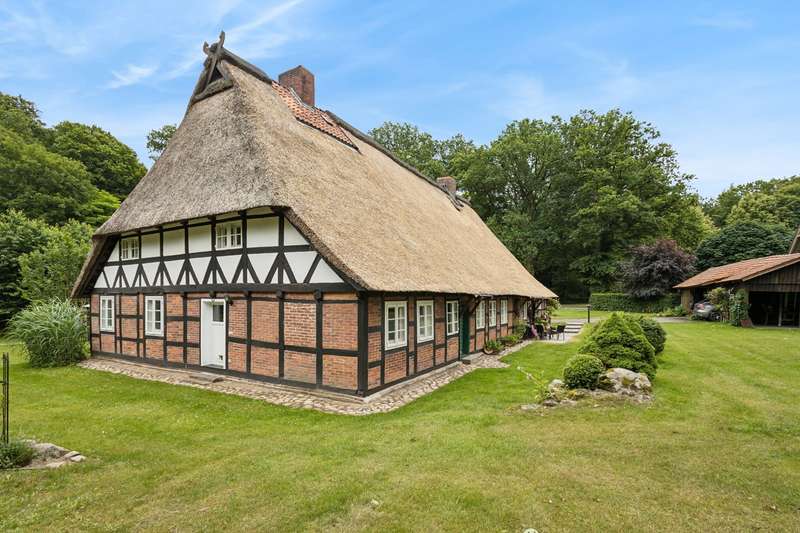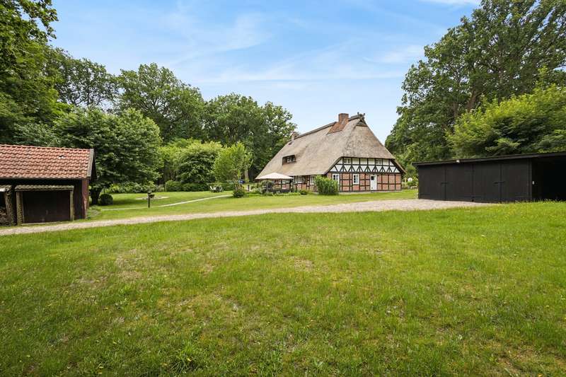 Here you can realize your dream of living and working. Discover this extraordinary house that combines tradition and modernity. This impressive old house has retained its character for around 200 years and was originally built in the 18th century in traditional half-timbered construction. The listed building stands on a plot of approx. 4,000 m². Of this, approx. 1,391 m² is leasehold land and approx. 2,600 m² is rented land. This beautiful half-timbered house with the thatched roof typical of the heath stands free in the middle of a large wooded plot in the northern nature reserve between Schneverdingen, Bispingen and Undeloh and offers you a unique combination of peace, beauty and urban accessibility. The house has a floor area of approx. 22 m x 12 m and has a living/usable area of approx. 225 m² on the first floor and a living/usable area of approx. 111 m² on the top floor. The outbuildings complete the space on offer. These include a carport for two vehicles and a tool shed, a further carport for two vehicles with shelter and a workshop building / garden shed. We look forward to hearing from you and will be happy to provide you with all the details about the property in a personal meeting.