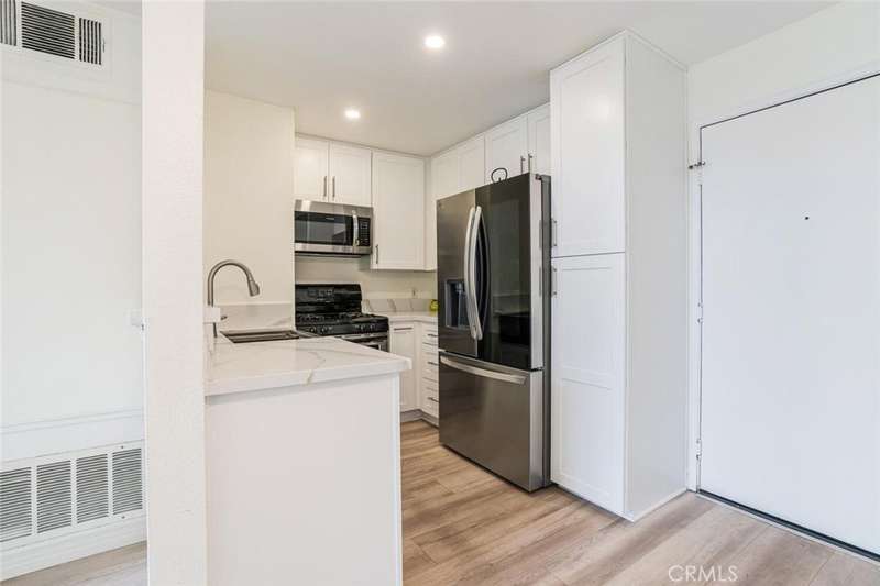 Remodeled Condo, Ready for Immediate Move In! A truly rare offering of this 1 bedroom, Top level condo away from busy street noise. From the moment you enter, you will notice the high vaulted ceilings and open and flowing floor plan. The location is close to the elevator and also features 2 assigned parking spots with easy access to and from the property. Upgraded finishes include: stainless steel appliances, remodeled kitchen, recessed lighting, wood flooring and remodeled bathroom with custom shower. Outside, you will find the balcony offers the perfect space to BBQ in the beautiful year-round weather that Woodland Hills has to offer. The Met, situated in the highly prestigious Warner Center, is an exclusive, guard-gated community spread across 26 acres of verdant grounds. The community consists of resort-style amenities including four pools, state of the art fitness center, six fully lit North/South tennis courts, children's playground, expansive poolside deck, indoor basketball court and racquetball court all while being minutes to local shopping, dining and entertainment in the heart of the San Fernando Valley. A true getaway that you can call home