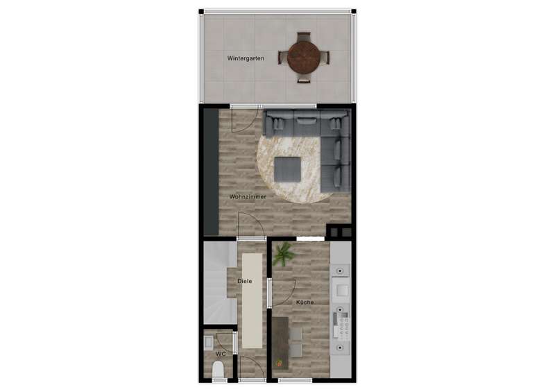 In a central residential area of Nordhorn, we present this mid-terrace house with a living space of approx. 91.22 m² on a plot of 193 m². The property is currently rented and generates a monthly rent of € 576.00. The house offers a total of four rooms and impresses with its functional room layout: First floor: Here you will find the entrance area with hallway, a guest WC, the kitchen and a spacious living and dining room with access to the small, low-maintenance garden. Second floor: Two bedrooms and a bathroom offer enough space for a small family or a couple with home office requirements. Top floor: A further bedroom as well as a practical floor room for storage round off the space on offer. A special bonus is the large private garage, which offers additional convenience and storage space. The property also has a partial basement and the roof of the residential unit has since been renewed. Don't hesitate to take a closer look at this interesting offer - we look forward to hearing from you!