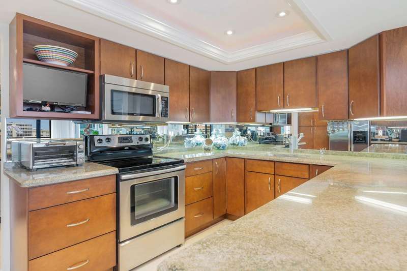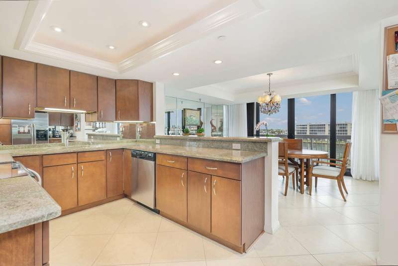 Spectacular water views from this ''move in ready'' & furnished 3B2.5 bath condominium located in coveted & gated community of Old Port Cove. Double door entry, wet bar,open updated kitchen, complete hurricane impact doors with wrap around balcony affording direct south view with east & west vistas to enjoy the boats go by. & gorgeous sunsets. Onlyfour units per floor, recently made improvements to lobby, balconies and new roof. Amenities include 24 hour security, two mile jogging trail and restaurant across the street located atmarina. Convenience to beaches, shopping, dining & cultural centers.