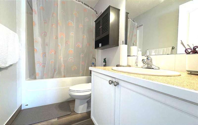 Discover modern comfort in this renovated home with a total of 4 bedrooms and 4 washrooms ( 1 primary ensuite bathroom 4pcs, 1 common 4pcs, and 2 x 2pcs). The fully finished basement consists of an additional bedroom, a gym room & a 2-piece washroom. The seller had replaced all the flooring with vinyl planks last year and new paint throughout the whole house. Private backyard with deck. 2 assigned parkings stalls located at the front of the unit. Walk to playground & hockey rink, easy access to Highway 1A. This bare-land condo allows pets. The seller would include 2 Anespa Shower filtration systems & a (K8) Ionizer, which is a top-of-the-line quality drinking system, a total value worth over $10,000.