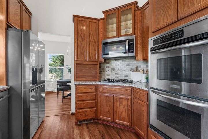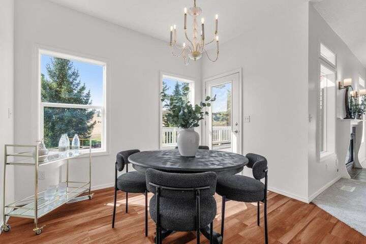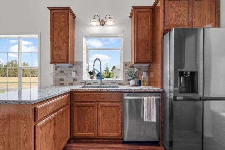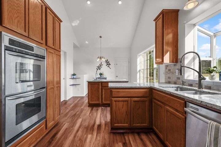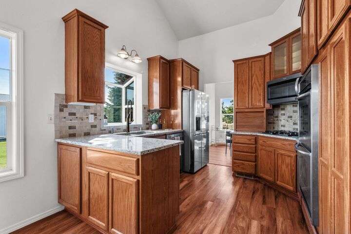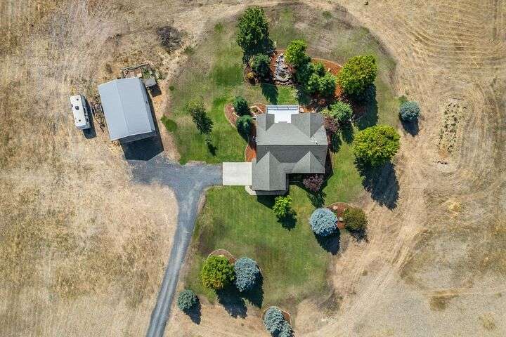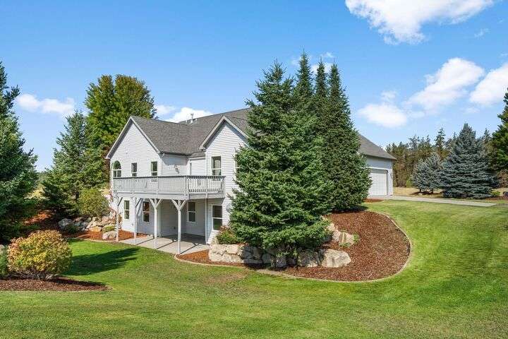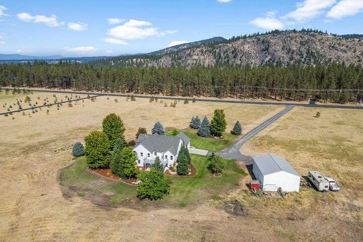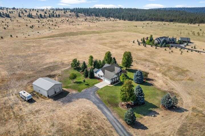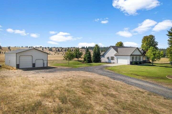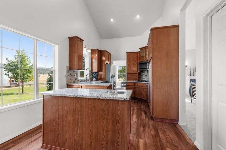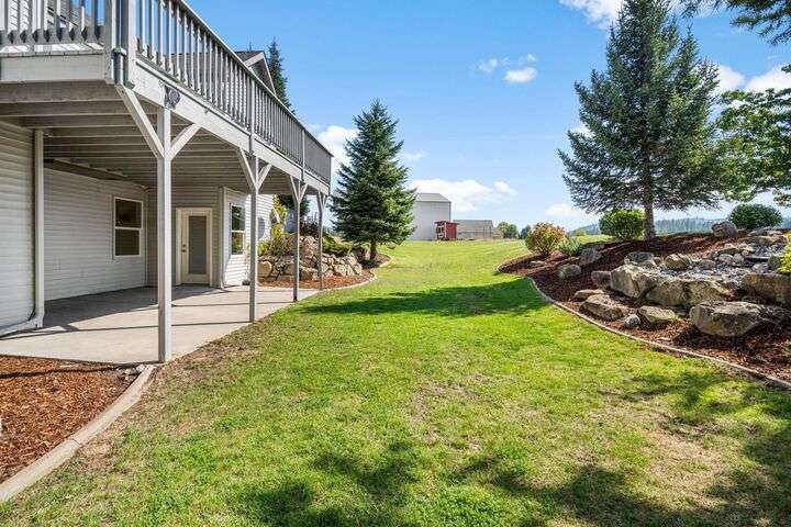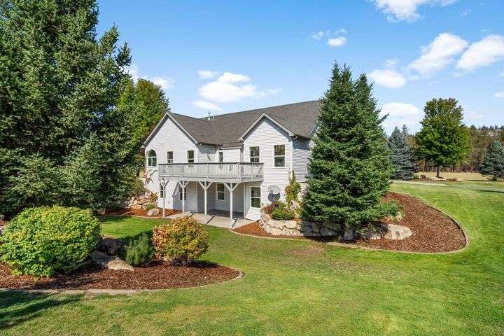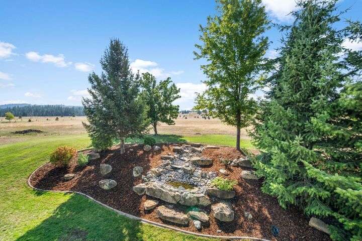 This John Runyan custom-built 5 bed, 3 bath home sits on 10 private acres and offers the perfect blend of comfort, function, and acreage living. The gourmet kitchen features a built-in gas range, double ovens, and expansive windows that flood the home with natural light. Fresh paint, new carpet, and a fully renovated primary suite highlight the main floor, complete with a large bedroom, sitting area, and spa-inspired bath with a garden tub overlooking the property. The lower level is designed for versatility—ideal for multigenerational living or entertaining—with 9’ ceilings, a wine/panic room, 2 bedrooms, a full bath, and hookups for a kitchen or wet bar alongside plumbing for a gas fireplace. Step outside to mature landscaping, colorful flower beds, and a tranquil water feature that frames the back patio and deck. A 30x40 shop with reinforced concrete floors provides room for projects, storage, or toys. Located in Mead or 9 Mile School Districts.