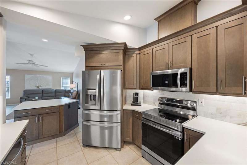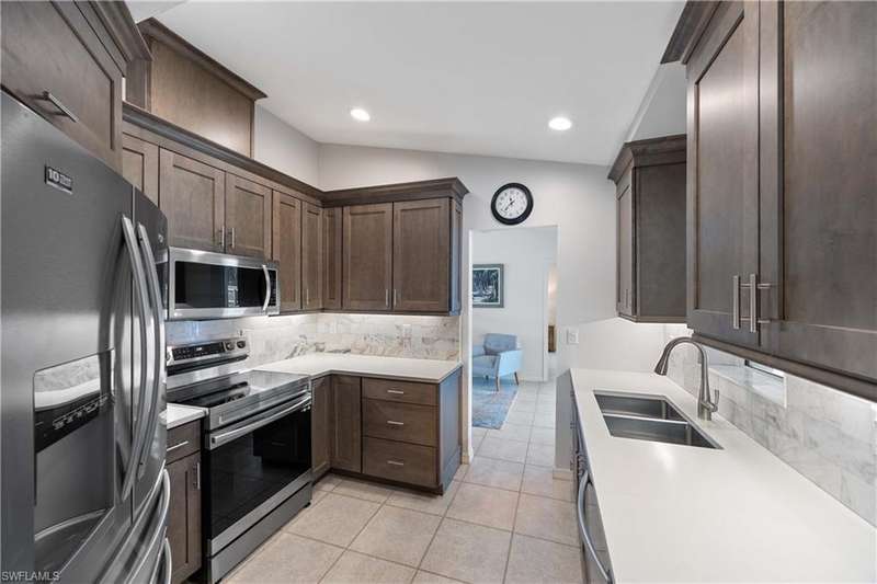 Experience the perfect blend of comfort, style, and location in this beautifully maintained pool home in the highly desirable community of Regent Park. This North Naples gem offers low HOA fees and a prime location West of I-75, providing easy access to Naples beautiful beaches, upscale shopping, fine dining, and top-rated schools. Step inside to find bright, open living spaces filled with natural light and views of the pool and backyard. The remodeled kitchen is a true highlight, featuring rich wood cabinetry, quartz countertops, stainless-steel appliances, and plenty of prep space for cooking and entertaining. The home s functional split-bedroom layout provides privacy for the owner s suite, while the guest bedrooms offer flexibility for family, visitors, or a home office. The spacious owner s suite serves as a peaceful retreat with sliding doors that open directly to the pool and lanai, dual walk-in closets, and a bathroom featuring stylish finishes, dual vanities, and a walk-in s