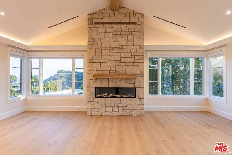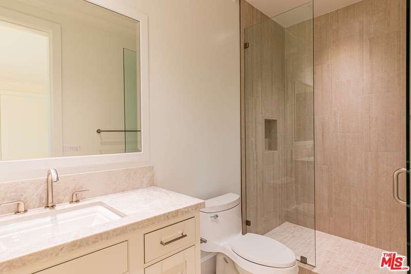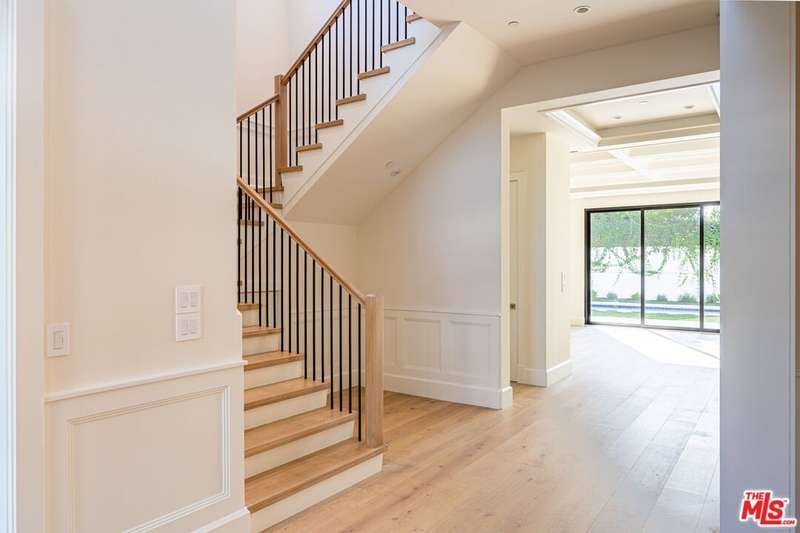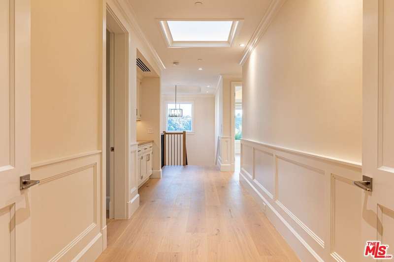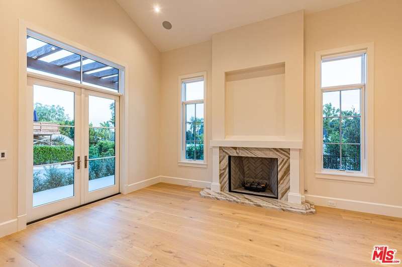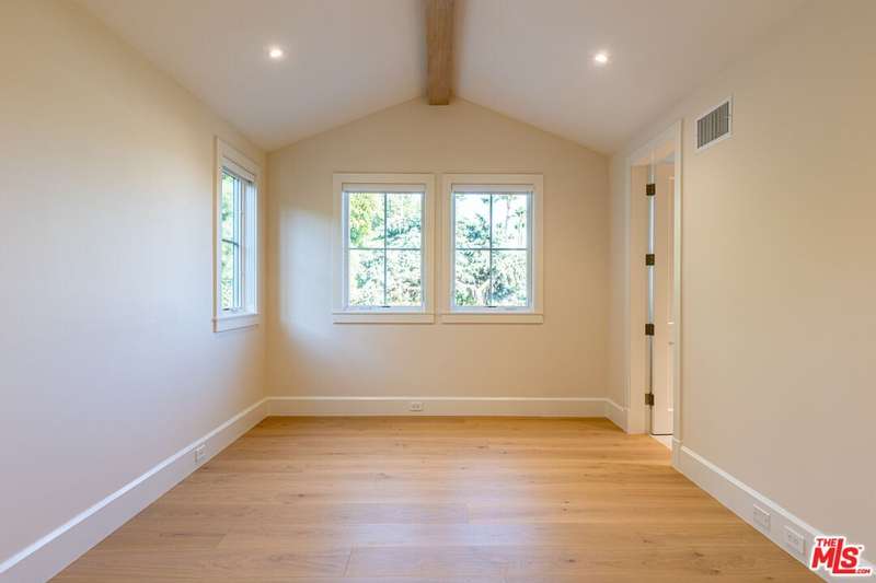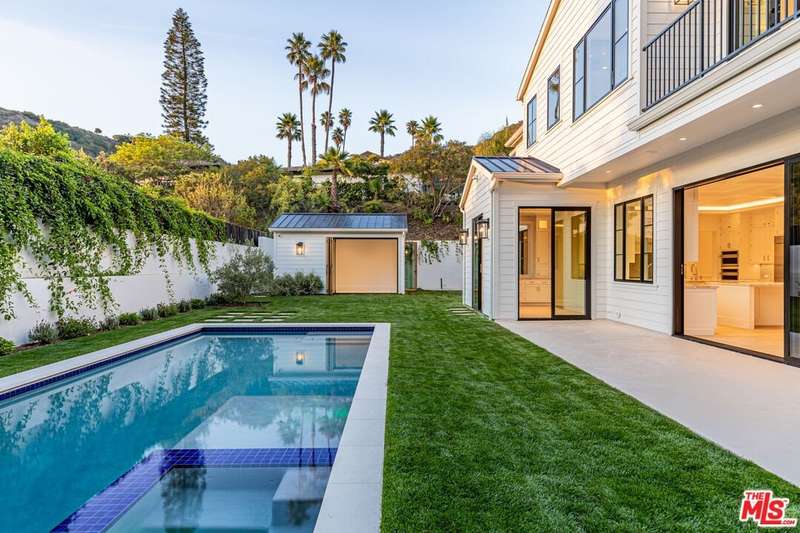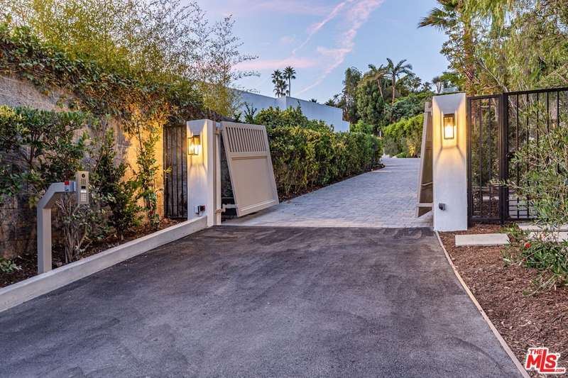 Privately set on a gated flag lot in Beverly Crest, this newly built Beverly Hills home blends timeless California Craftsman style with Cape Cod elegance. Elevated above the street for added seclusion, it features top-of-the-line finishes including hardwood floors, marble surfaces, designer lighting, custom millwork, and surround sound. The open floor plan includes a gourmet kitchen with dual islands, breakfast nook, and premium appliances, flowing into a spacious living area with large sliding doors that open to a private backyard with a pool, spa, lawn, and patio. A flexible office or guest room with fireplace sits near the entry, and a detached bonus space offers use as a gym, studio, or guest suite. Upstairs, the luxurious primary suite includes a fireplace, balcony with canyon views, spa-like bath, and walk-in closet. Located minutes from top-tier shopping, dining, and entertainment, this home offers luxury, privacy, and exceptional design in a coveted location.