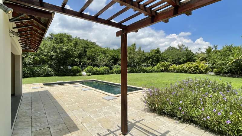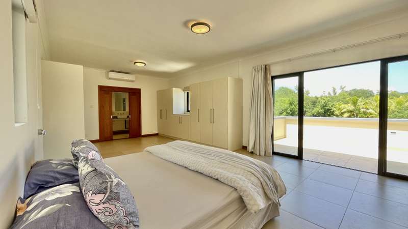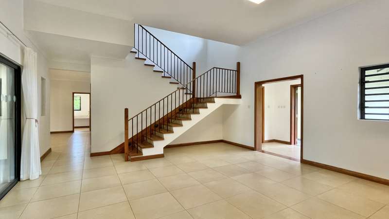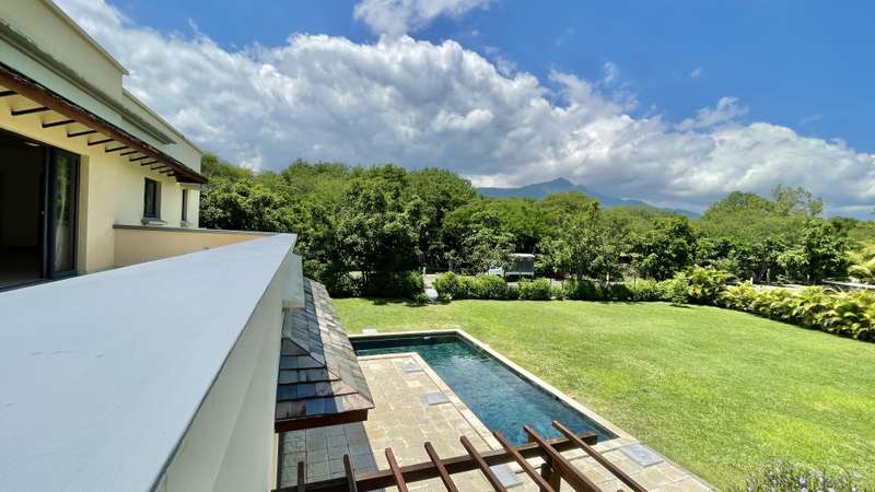 This 5-bedroom, double-storey , villa is ideal for anyone looking for a large unfurnished home in a gated estate in Black River, Mauritius, surrounded by mountains and lush vegetation. Neighbouring the Black River Gorges, the estate offers a wonderful lifestyle, where residents can enjoy a secure and natural environment, whilst being in close proximity to the sought-after amenities of Black River (La Balise Marina, Ruisseau Creole Shopping mall, La Preneuse Beach, Cap Tamarin…). All bedrooms are en-suite, with closet space and air-conditioning. 2 bedrooms are found on the ground floor, and the remaining 3 are on the first floor, of which two open onto a spacious balcony overlooking the garden and mountains in the background. A large living area, with open-plan kitchen, is found on the ground floor, leading directly onto the covered verandah and dining room. The kitchen is semi-attached to a scullery/laundry, which is also accessible from the garage. The 3300 m2 property is equipped with an electric gate + intercom, double garage, pool and automatic irrigation throughout the garden. MAURITIAN RESIDENCE PERMIT APPLICABLE UPON PURCHASE.