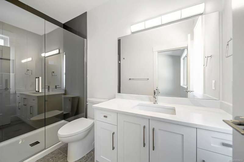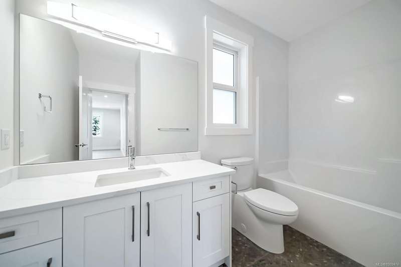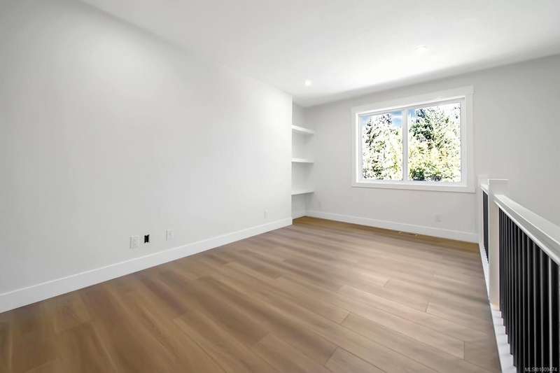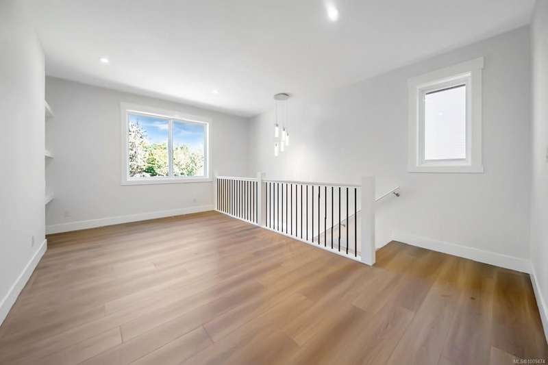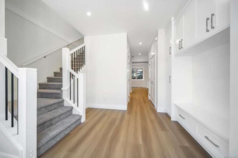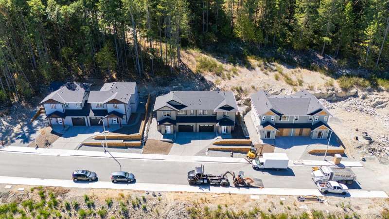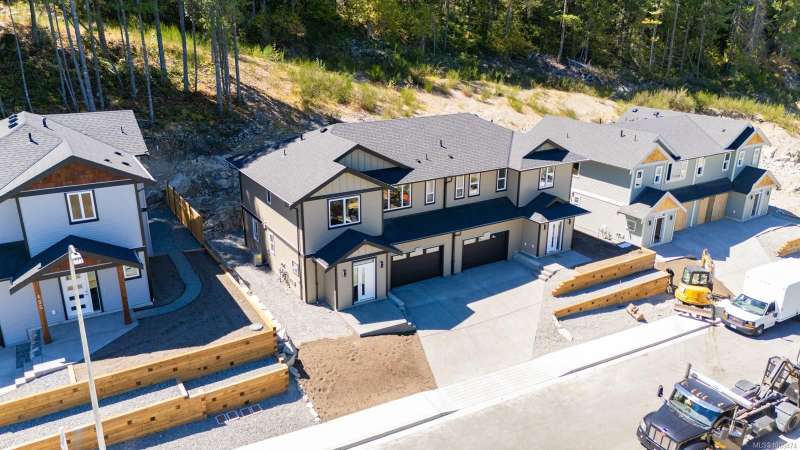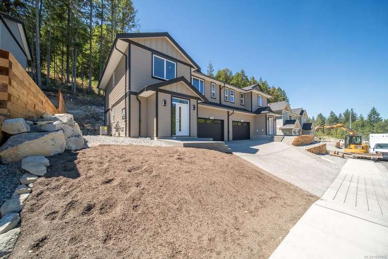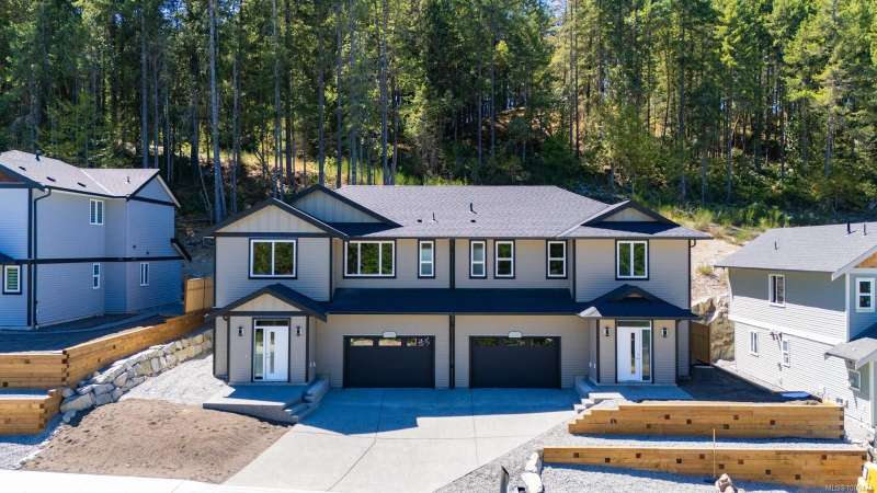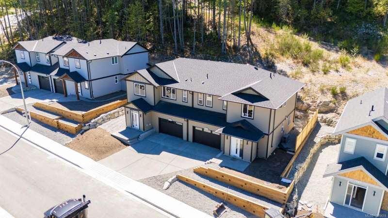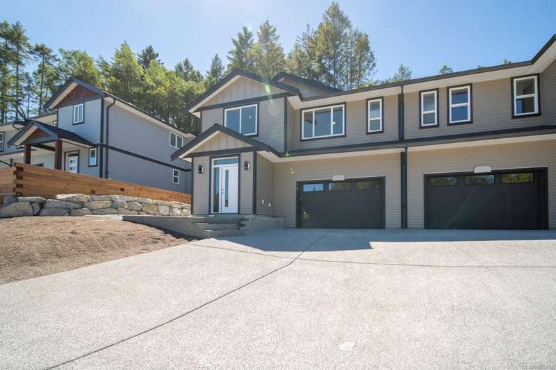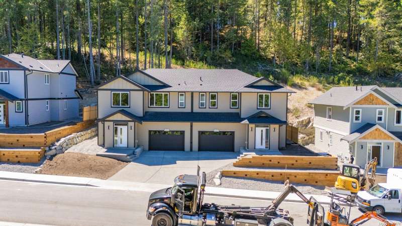 Introducing this brand-new side-by-side half duplex in Ladysmith's newest Hunter Way development. The main floor welcomes you with a custom-shelved entryway, convenient powder room, and an open-concept design perfect for modern living. The sleek kitchen features soft-close cabinetry, quartz countertops, and flows into the dining and living areas, anchored by an elegant electric fireplace. Upstairs offers a versatile loft/flex space, two well-sized bedrooms, a 4-piece bath, laundry room, and a spacious primary suite with a custom walk-in closet and 3-piece ensuite. Enjoy year-round comfort with a heat pump for heating/cooling plus a backup gas furnace. Water-resistant laminate flooring throughout adds durability and style. This move-in ready home offers the perfect combination of new build quality, comfort, and contemporary design.(Hunter Way is located on the right hand side at the end of Malone Rd.)