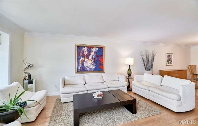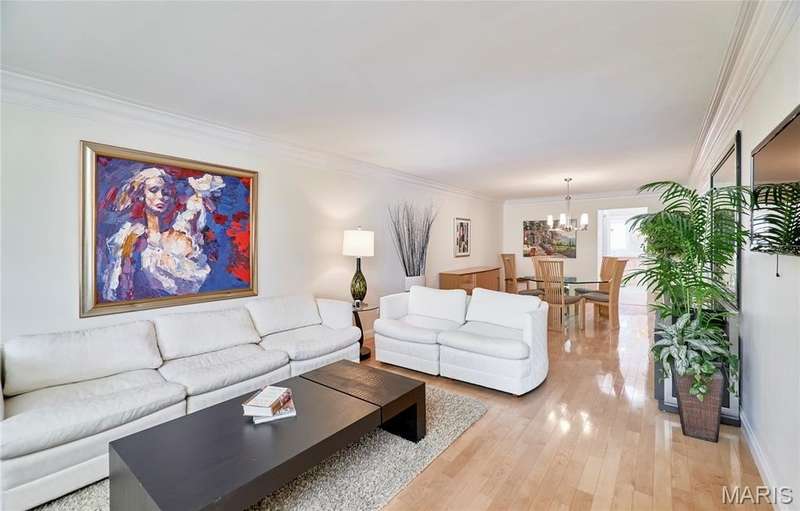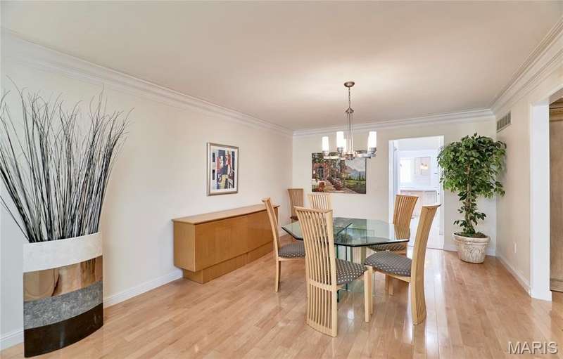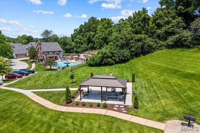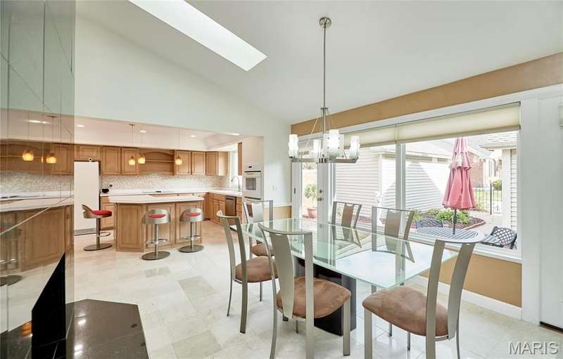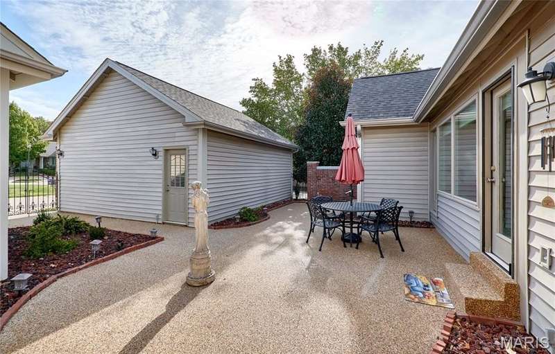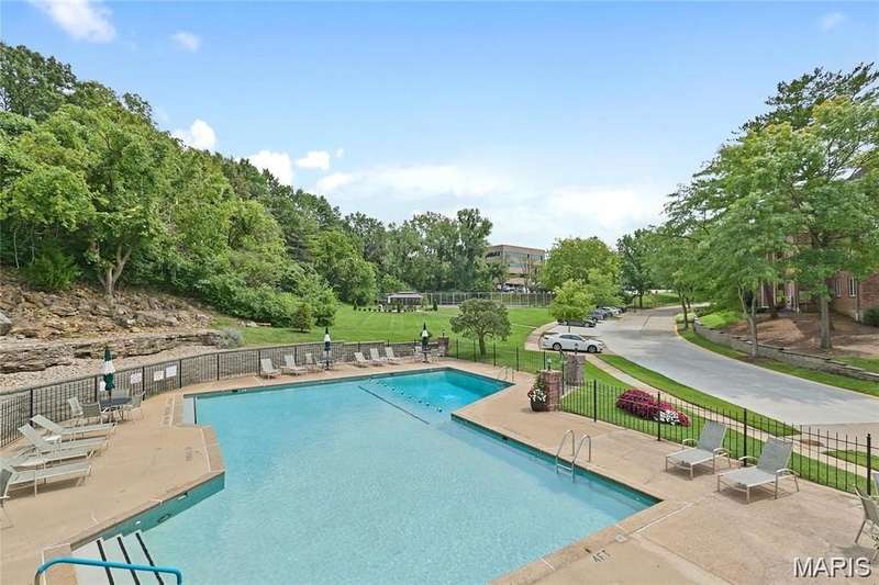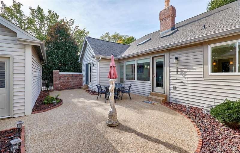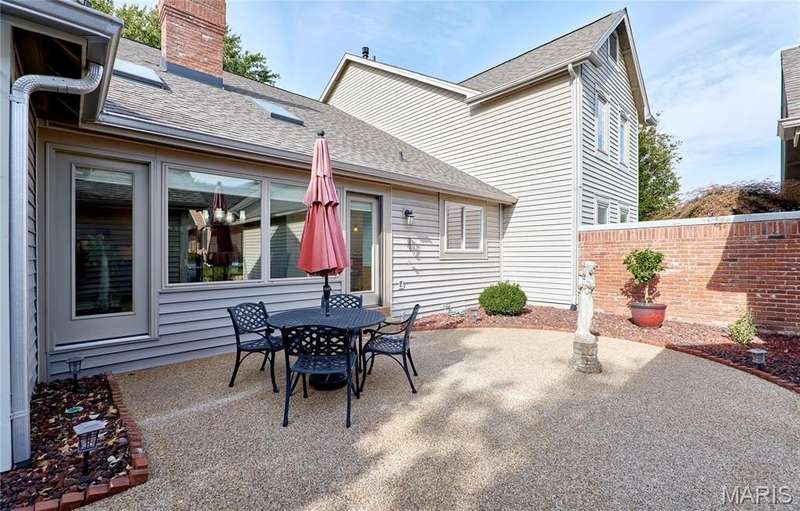 Welcome to carefree living in the beautiful, gated Conway Meadows Community offering many amenities such as pool, clubhouse, tennis court. This condo offers over 2400 sq ft. of main level living space, featuring spacious primary bedroom suite, formal living room/dining room combo with wood floors, crown molding. Great Room w/vaulted ceilings, built in bookcases, skylights & floor to ceiling double sided marble gas fireplace. Breakfast room that walks out to private courtyard with fence & detached 2 car garage. Kitchen includes double built in ovens, electric cooktop, refrigerator & dishwasher. Main floor laundry includes washer & dryer. Bedroom #2 has door leading out to courtyard, 2 large closets walking into a Jack n Jill bathroom to hallway. Large unfinished basement great for storage or finish to your liking. Well Maintained!! Low Maintenance living in one of Chesterfields most desirable communities. Don't miss out on this opportunity.
