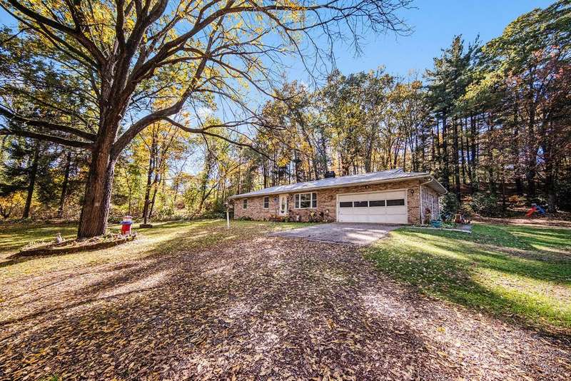 Secluded ranch on 16+ acres of prime hunting and homesteading land, set well off the road and shielded by mature pines for ultimate privacy. This 3-bed, 2-bath home offers a partially finished basement with 918 sq ft of living space, newer metal roof, and 2-car attached garage. Enjoy three heat sources?wood fireplace, radiant, and forced air?plus central A/C, natural gas, and whole-house generator hookup for year-round comfort. The land features multiple hunting stands, a full survey with visible boundary markers, abundant mature hardwoods, and ample space for gardening or small-scale farming. Included in the sale: all-in-one washer/dryer, 2 refrigerators, and a large pole barn with cement floor and wood heat. Located on a quiet, low-traffic road?perfect for a self-sufficient lifestyle or weekend retreat.