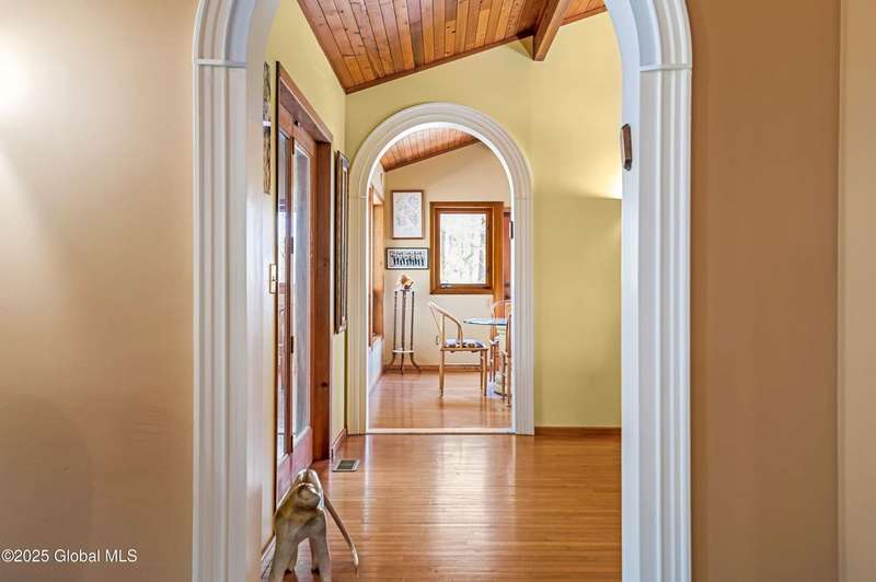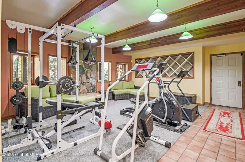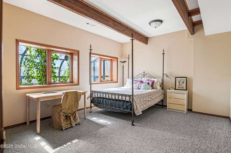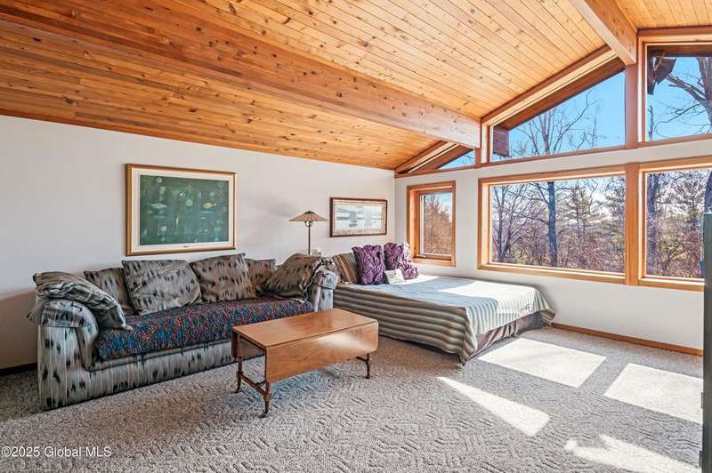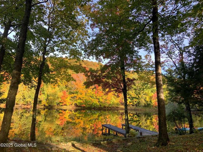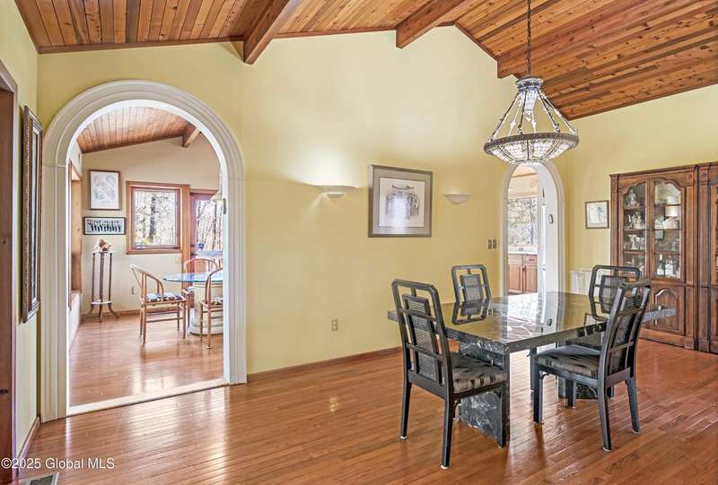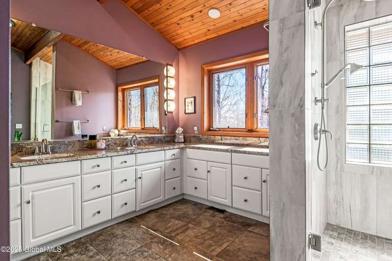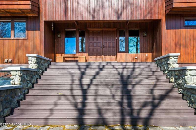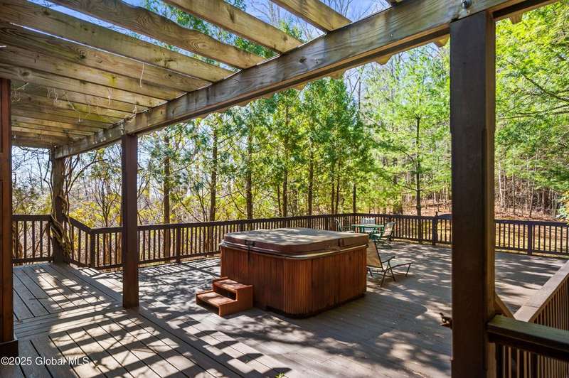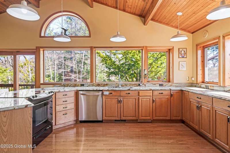 Escape to your private utopia in the heart of nature on 17.86 acres! This stunning 4-bedroom, 3-full bathroom retreat offers 4,361 square feet of living space across 3 levels. Panoramic lake views from almost every corner of this magnificent home! Step into a serene sanctuary with tongue-and-groove cedar ceilings, exposed wood beams, and arched doorways. Bask in natural light from copious windows, cathedral ceilings, and floor-to-ceiling stone surrounds. The kitchen features quartz counters, a walk-in pantry with built-in California Closet shelving and drawers, and an atrium glass door that leads out to the new wrap-around Trex deck. 2-car garage and an additional detached 2-car garage with storage above. This breathtaking property, boasting ? mile of shorefront, offers unparalleled relaxation and significant Airbnb potential. It is enveloped by lush greenery and scenic hiking trails. Unwind by Evans Lake, where nature's tranquility seamlessly blends with luxurious living.