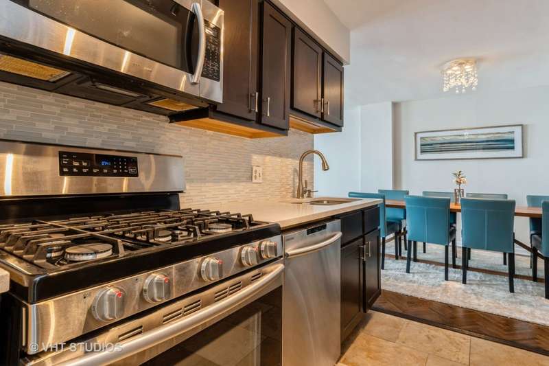 Beautifully remodeled luxury condo in Oak Brook Towers. Gorgeous herringbone pattern hardwood floors in the living and dining room, Travertine tiles in the foyer, hall and kitchen, recently remodeled baths with new porcelain tile, vanities and fixtures. The recently remodeled Kitchen features new cabinets, quartz countertops, tile backsplash and stainless appliances. The spacious Owner's Suite features two large closets and linen closet. Assessments include heat, water, gas, cable tv, internet and building amenities such as the pool, workout room and party room. Prime assigned garage parking spot for an additional $70/month, 1st spot outside the garage entrance door. Fantastic location close to highways, shopping and dining. Hurry!