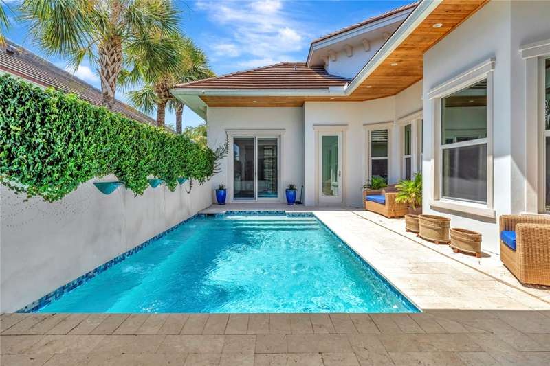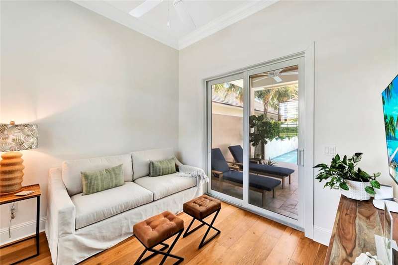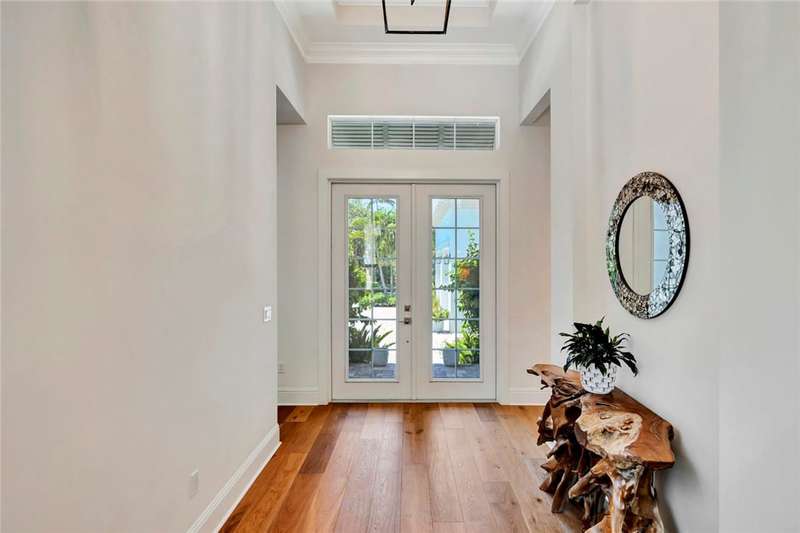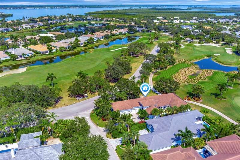 Built in 2020, this beautifully appointed home overlooks the 14th green & 15th tee box in Orchid Island. Currently the most recently built listing available in Orchid Island. This bright & open feel home offers wood floors, impact glass, full home generator & whole home water purification system. Gourmet kitchen w/wolf gas cooktop, butler's pantry w/beverage cooler, formal dining & breakfast nook. Den opens to lanai w/built-in grill overlooking the heated courtyard pool. A/C 2 car + golf cart garage. Stunning golf views. Membership to Orchid island is mandatory. Sizes approx./subj. to error.