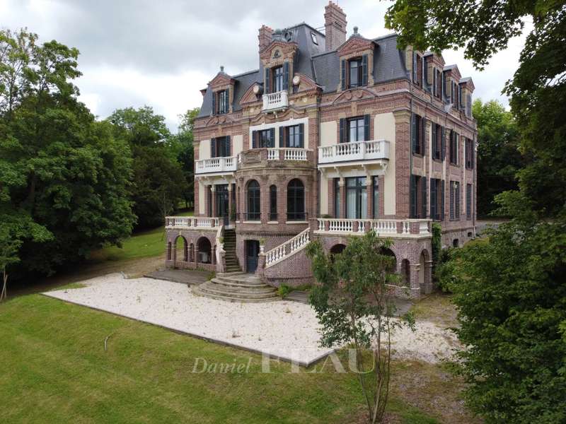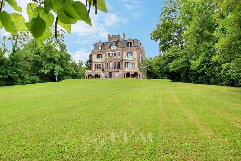 This sumptuous 19th century villa set in 1.75 hectares of enclosed grounds is located just a stone’s throw from the beach and the shops in the heart of popular seaside resort Villers-sur-Mer. Offering 670 sqm of entirely renovated living space, it includes a majestic entrance hall, superb reception rooms including a library and a billiard room, a dining room and a spacious kitchen with dining facilities. Period features include high ceilings and large windows bathing the rooms in sunshine and enjoying views of the landscaped garden. The upper floors comprise 9 bedrooms including several suites, studies, a reading room, dressing rooms and a utility room. The top floor offers about 54 sqm of convertible living space. The 213 sqm garden level includes a recreation room, a fitness area with a shower room and wc, a wine cellar, a storage room and technical premises. With a near 100 sqm caretaker’s house to renovate, and about 130 sqm annexes to restore. Accessed by means of magnificent wrought-iron gates, the leafy grounds include a tennis court to renovate.