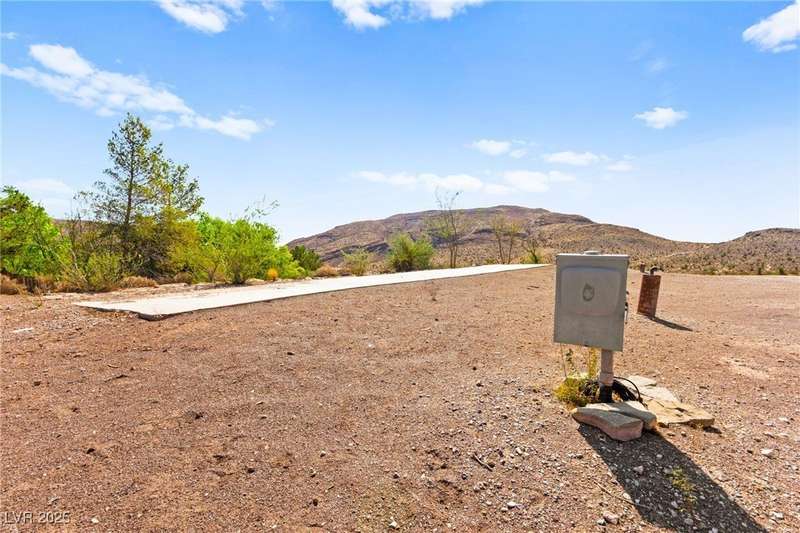 An exceptional opportunity to own a premier 2.5-acre homesite in the serene, highly sought-after community of Blue Diamond. Perfectly perched on an elevated lot, this property offers unobstructed panoramic views of the surrounding mountains—a truly breathtaking backdrop for your dream estate. Enjoy unmatched privacy with a private driveway leading to the lot, where water and power meters are already installed, making it construction-ready and ideal for immediate development. Whether you're a custom home builder, investor, or discerning buyer looking to create a one-of-a-kind luxury retreat, this lot delivers the perfect canvas. Beyond the property itself, Blue Diamond offers a charming, tight-knit community with a range of amenities including a park, pool, library, elementary school, restaurants, and more—all surrounded by natural desert beauty and world-class hiking and biking trails. With its peaceful setting, small-town charm, and proximity to Las Vegas, this is a rare opportunity.
