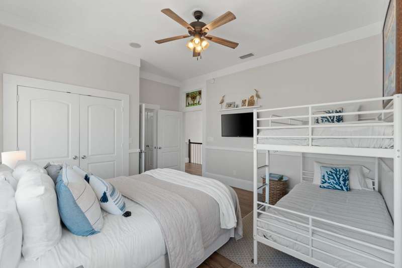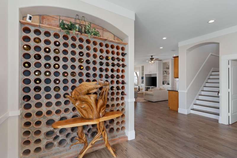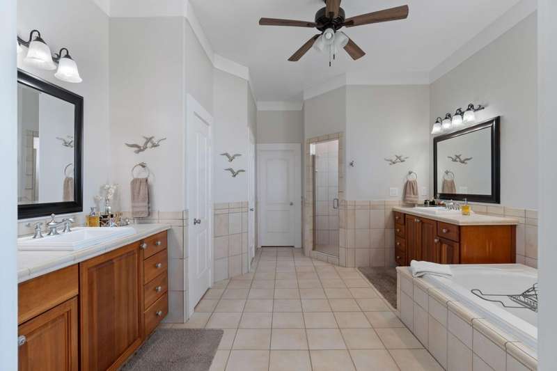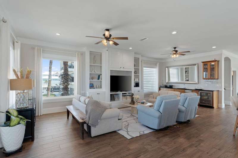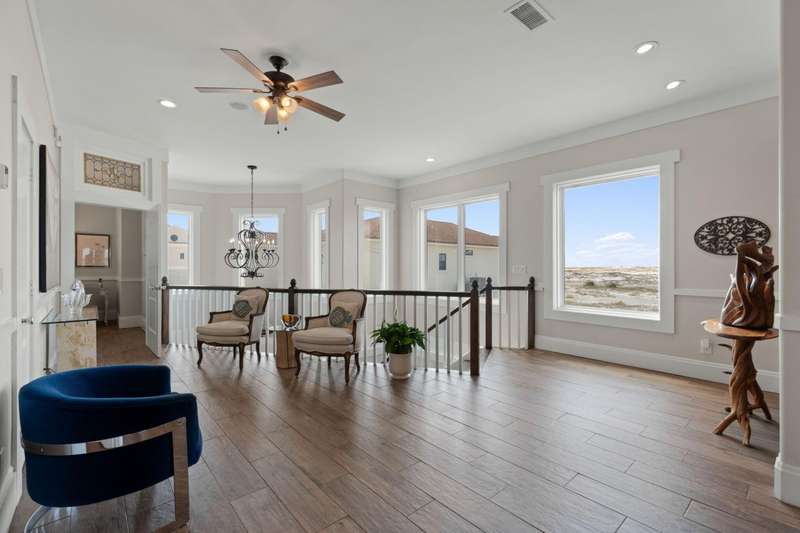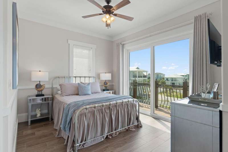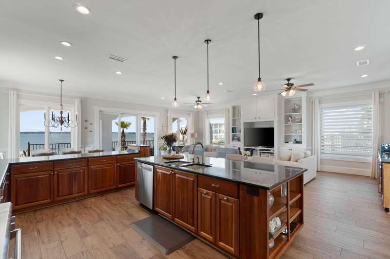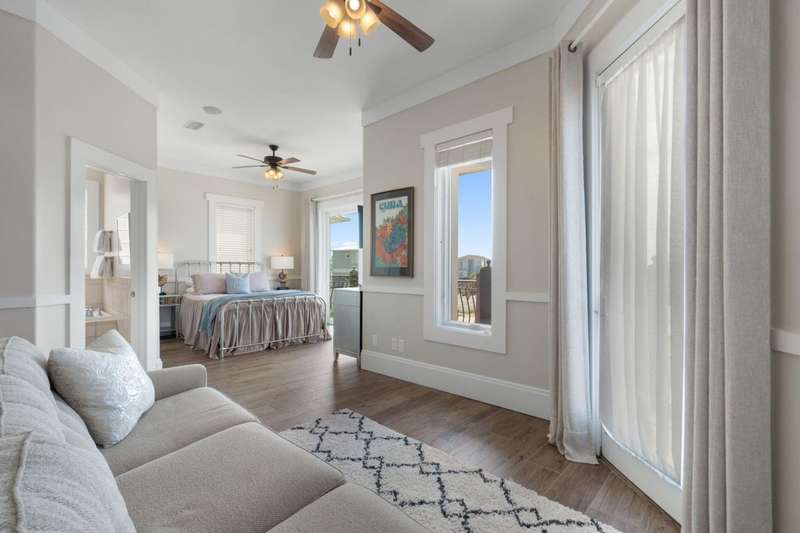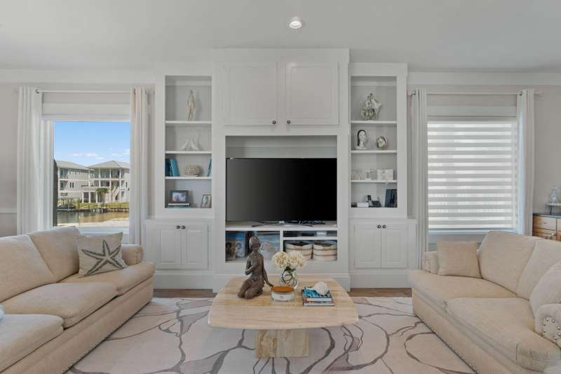 Exquisite Waterfront Residence in Sailmaker Cove. Step into a world of luxury and tranquility with this stunning waterfront home, nestled within the prestigious, gated community of Sailmaker Cove. This custom-built residence seamlessly blends timeless coastal design with elevated Mediterranean elegance, surrounded by the serene landscape of Gulf Islands National Seashore.Upon arrival, the property makes an immediate impression with its elegant white stucco exterior and Spanish cement tile roof, complemented by a beautifully designed wrought iron balcony offering captivating views of the Gulf and it's pristine sugary beaches. Spanning over 3,794 square feet, this meticulously curated 4-bedroom, 5-bathroom home is designed to elevate your lifestyle and spirit. The first floor features an open-concept layout, perfect for gatherings, that effortlessly integrates into a chef's dream kitchen, adorned with high-end, custom solid wood cabinetry and stone countertops. Imagine dining while savoring breathtaking sunsets from the comfort of your home.Additional highlights of the first floor include a spacious bedroom suite with a luxurious bath. Tiles and hard wood flooring and a host of subtle custom finishes thoughtfully designed throughout the home such as imported sinks, a stunning cement wall for showcasing your favorite wines, and exquisite 19th-century European stained glass above bedroom doors and throughout selected walls really showcase this spectacular home. The spacious primary suite on the second floor serves as a true retreat, boasting a cozy sitting area, custom built-ins, and a private balcony with breathtaking views of the Gulf. Two additional guest bedrooms, each with en-suite baths and picturesque views of the sound and national park, provide ample space for family or guests.The garage is equally impressive, with high ceilings and generous storage space, including an area designed for a golf cart.The rear exterior of the home is perhaps its most enchanting feature, inviting you to relax or entertain at any time of day while being embraced by nature. Whether you prefer watching dolphins swim or enjoying a peaceful read, this unique setting promises to be a spectacular experience.Conveniently located just across from a tranquil, less-crowded beach. Take a short, scenic ride through the park to the vibrant Pensacola Beach for an array of dining and entertainment options. Sailmaker Cove provides a serene gated community experience, bordered by natural beauty, including the stunning Santa Rosa Sound.Residents also have access to the refreshing community pool, making this property an ideal choice for a primary residence, vacation home, or a lucrative short-term rental opportunity. This home is truly a rare gem that will not disappoint!