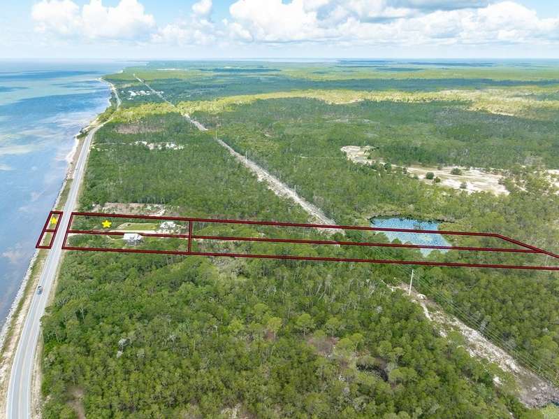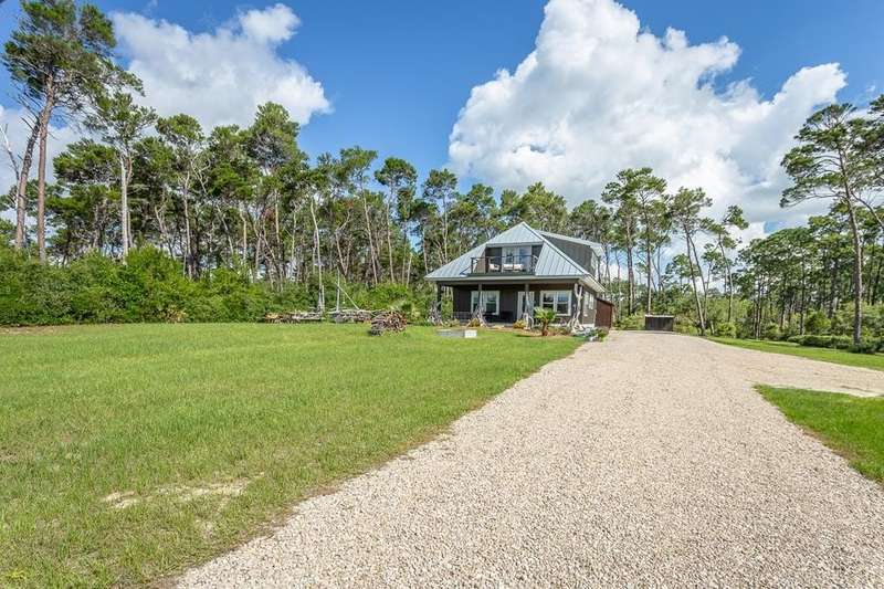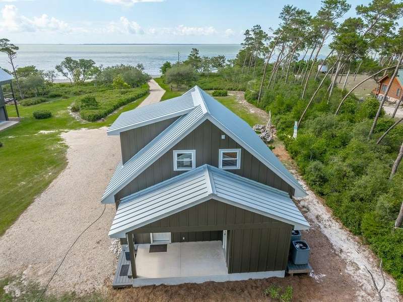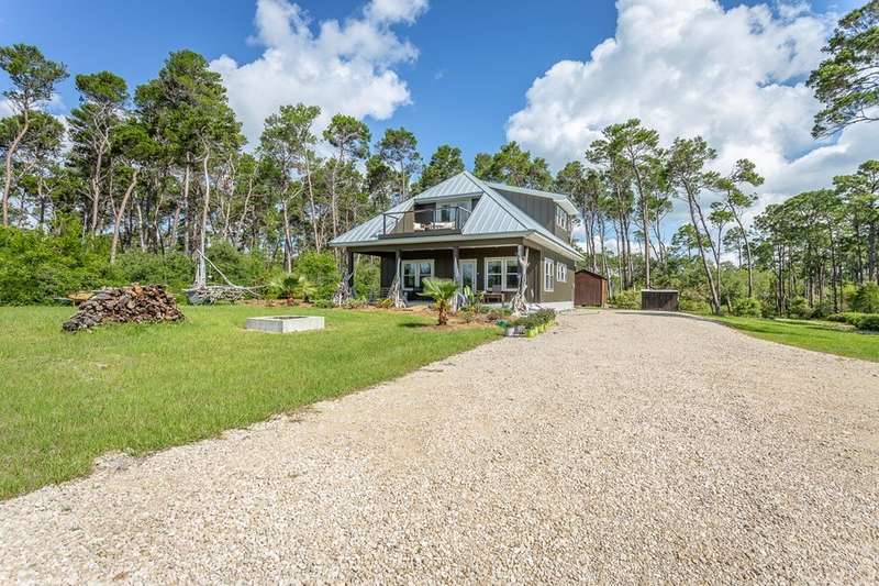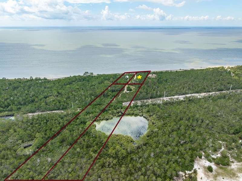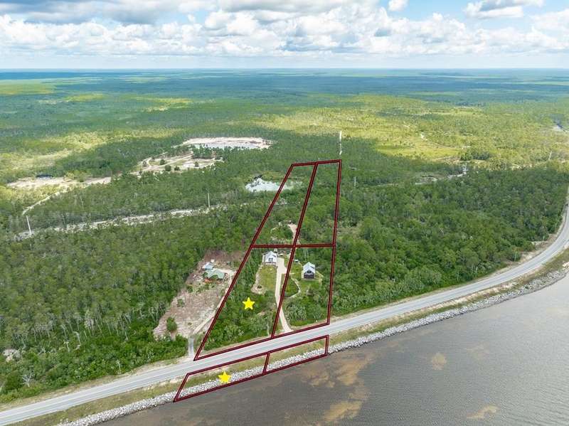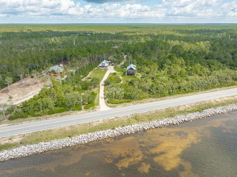 Stunning Bayfront Retreat on Florida's Forgotten Coast 1.5+ Acres | 2 Master Suites | Rooftop Deck Welcome to your dream coastal home set on 1.5+ acres of pristine waterfront along Florida's breathtaking Forgotten Coast. Nestled among mature trees and natural landscaping, this beautifully designed residence offers panoramic views of St. George Sound. Step inside the light-filled, open-concept interior featuring engineered hardwood floors, hand-troweled textured walls, pocket doors, and natural wood accents. The modern kitchen boasts quartz countertops, slate black appliances, and a spacious laundry/mudroom for added convenience. A large covered front porch and a rear porch with additional storage provide perfect spaces for outdoor living and entertainment. This home includes dual master suites one on each floor—each with custom features: Main floor master: Walk-in closet, tub/shower combo with elegant subway tile. Second-floor master: Double closets, walk-in shower with dual shower heads, private access to a rooftop deck with sleek cable railing. Upstairs, a flexible loft area with built-in storage and workspace makes a perfect home office or guest retreat. Additional Highlights: LED recessed lighting & ceiling fans throughout Pocket doors & matte black hardware Tilt-in windows with screens Hardie Board & Batten Exterior 1.5+ acre lot with mature coastal flora & planted grasses Unlimited water views and serene, private surroundings Whether you're seeking a permanent residence or a coastal getaway, this home is a rare blend of modern comfort and natural beauty. Come experience the magic of bayfront living. Additional parcels available for sale: See 1913 Hwy 98 and 1915 Hwy 98. This listing for 1911 Hwy 98 is indicated with a yellow star in the drone picture and includes the parcel on the water.