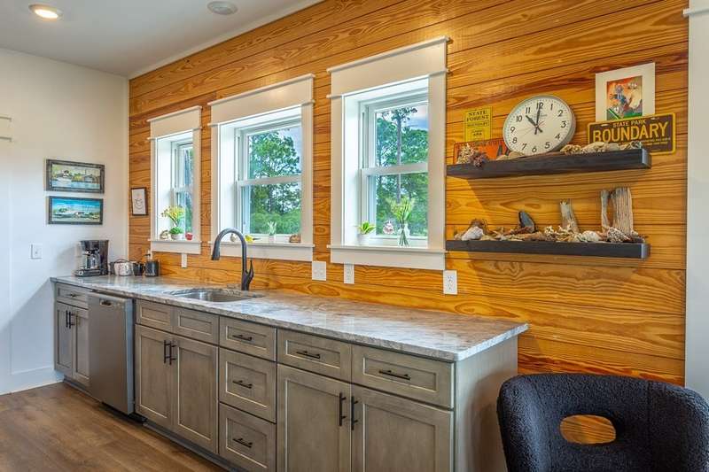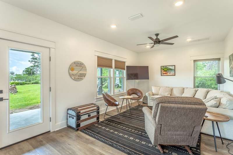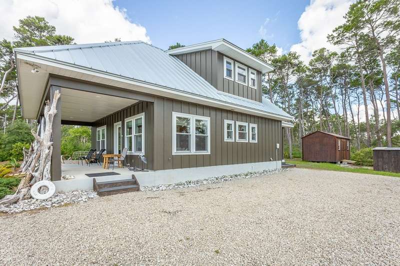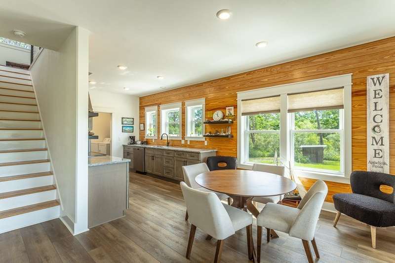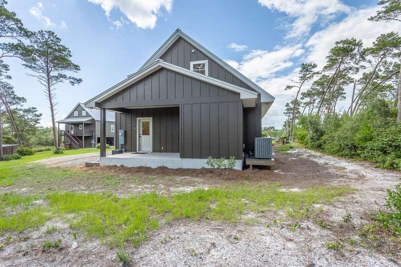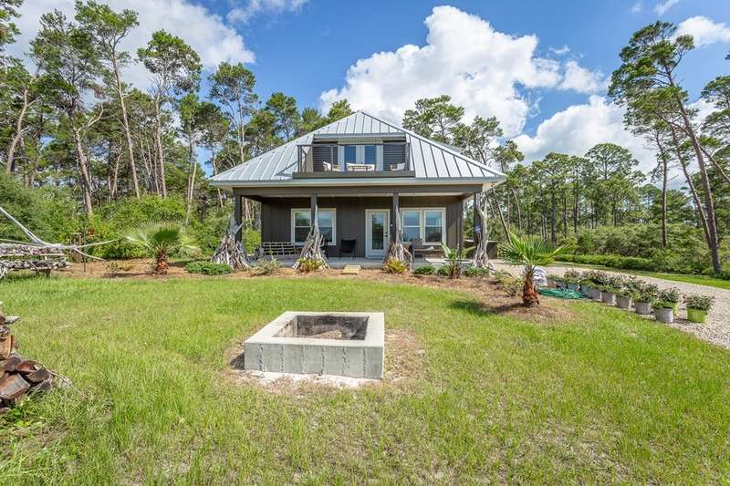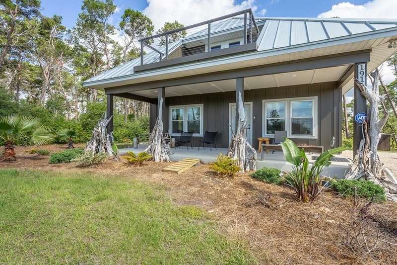 Stunning Bayfront Retreat on Florida's Forgotten Coast 1.5+ Acres | 2 Master Suites | Rooftop Deck Welcome to your dream coastal home set on 1.5+ acres of pristine waterfront along Florida's breathtaking Forgotten Coast. Nestled among mature trees and natural landscaping, this beautifully designed residence offers panoramic views of St. George Sound. Step inside the light-filled, open-concept interior featuring engineered hardwood floors, hand-troweled textured walls, pocket doors, and natural wood accents. The modern kitchen boasts quartz countertops, slate black appliances, and a spacious laundry/mudroom for added convenience. A large covered front porch and a rear porch with additional storage provide perfect spaces for outdoor living and entertainment. This home includes dual master suites one on each floor—each with custom features: Main floor master: Walk-in closet, tub/shower combo with elegant subway tile. Second-floor master: Double closets, walk-in shower with dual shower heads, private access to a rooftop deck with sleek cable railing. Upstairs, a flexible loft area with built-in storage and workspace makes a perfect home office or guest retreat. Additional Highlights: LED recessed lighting & ceiling fans throughout Pocket doors & matte black hardware Tilt-in windows with screens Hardie Board & Batten Exterior 1.5+ acre lot with mature coastal flora & planted grasses Unlimited water views and serene, private surroundings Whether you're seeking a permanent residence or a coastal getaway, this home is a rare blend of modern comfort and natural beauty. Come experience the magic of bayfront living. Additional parcels available for sale: See 1913 Hwy 98 and 1915 Hwy 98. This listing for 1911 Hwy 98 is indicated with a yellow star in the drone picture and includes the parcel on the water.