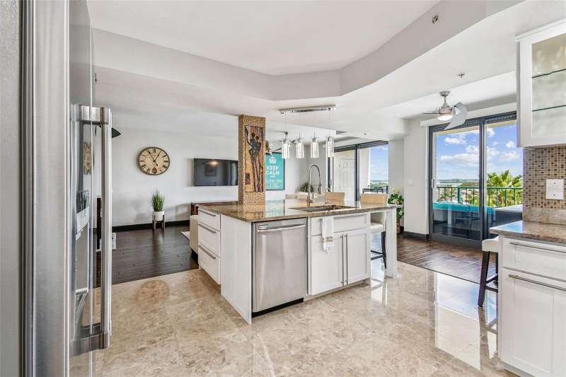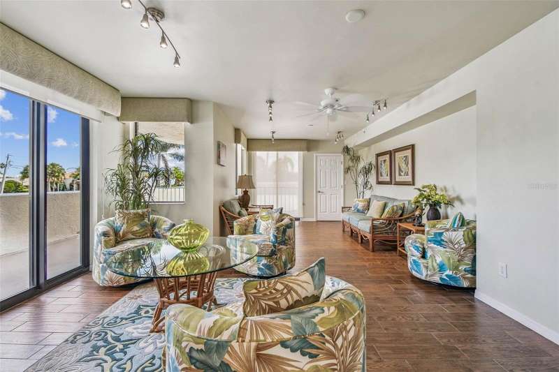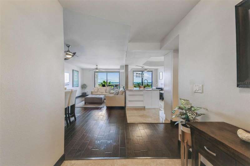 Stunning Southeast Corner Unit Condo with wrap-around BALCONY! Updated, Rare find, Kitchen Space Reimagined, Completely Open to Living and Dining. Welcome to Sunwatch Condominiums on Island Estates, 6th Floor, Water Views to the Southwest, see the Gulf and Intracoastal Water Views to the East, distant View of St. Joseph's Sound and Downtown Clearwater, the Sound Amphitheater, and to the Northeast see Dunedin too! This Condo is Move-In Ready with all large furniture staying for the new buyer! Peace of Mind and Energy Efficiency: 2022 REMOTE-controlled HURRICANE Shutters on all Sliders! And Nothing to do here! 2023 AC, 2021 Hot water tank, remodeled from one end of the condo to the other. Light and bright with an open floor plan and tile and wood floors, custom cabinets, stone tops, and high-end finishes. Specifically, to this unit UNDER BUILDING SECURE PARKING Space #45 under the building parking! Waterfront Resort Style Complex with 2 Tennis Courts, 2 Pools, Spa, Fitness Room, Billiards/Meeting Room, Party Room, 2 Covered Outdoor Pavilions, 2 Grills, Beautifully Landscaped Grounds, Guest Suites, and when available Marina Slips! Full-time property manager on site and building maintenance supervisor. Large Balcony invites you to enjoy the View of the Pools, the Passing Yachts, Personal Watercraft, Dolphins, Beach Activity, and Seasonal Sunsets. Just minutes from the Beach and just down the street from Dining, Bar and Grill, Grocery Store, UPS, Nail Salon, and Clearwater Marine Aquarium! This is a Pet-Friendly Building, Rentals allowed, One-year Minimum. This is a Great Condo Get Away, a way to End Your 1031 Exchange or a Full-Time Residence! What are you waiting for? Come Live the Lifestyle; Come Live on the Island!