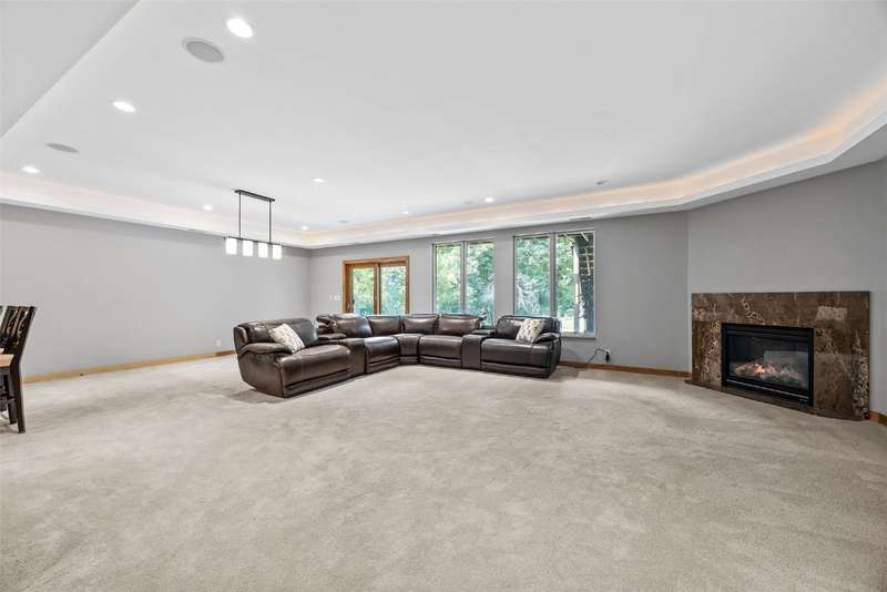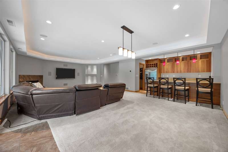 Experience refined living in this one-of-a-kind custom estate, thoughtfully designed for comfort, functionality, and beauty. With nearly 6,000 square feet of space, this home features soaring floor-to-ceiling windows that frame tranquil woodland views, a firelit backyard with water feature and a screened-in porch for peaceful outdoor living. The main level includes a formal great room, private office, formal dining room, laundry room, and a stunning primary suite with spa-inspired en suite bath and dual walk-in closets. Upstairs, two bedrooms share a Jack and Jill bath alongside a built-in study area, flex room, and secondary laundry.The walkout lower level is an entertainer’s dream, featuring a wet bar, craft room, gym, 2 additional bedrooms with jack and jill bath, and direct access to the backyard retreat. With geothermal heating and cooling, a whole-home audio system, and an oversized 3-car garage, this home blends sustainability with luxury in every detail.