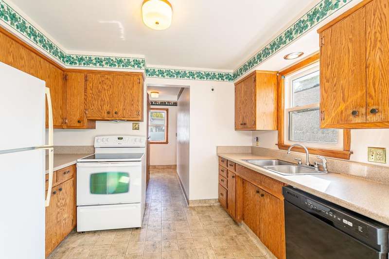 Why rent when you can own? This open-concept 3-bedrm, 1.5-bath ranch offers over 1700 SF of living space w/some finished lower level. Sun drenched Kitchen w/dishwasher & dining area offers patio doors leading outside. Wood floors in bedrooms are ready to shine again with some TLC. The full bath includes an updated walk-in shower, and the primary bedroom offers a convenient half bath. LL with lots of potential. Recent updates include: roof, siding, &windows, ensuring peace of mind for years to come. Outside, fenced backyard offers a great space for pets or entertaining & attached one-car garage adds convenience. Excellent location—walk to Highlands Elementary & Kiwanis Park, with shopping and restaurants just minutes away. Home is ready for your personal touch-get a showing set up today!