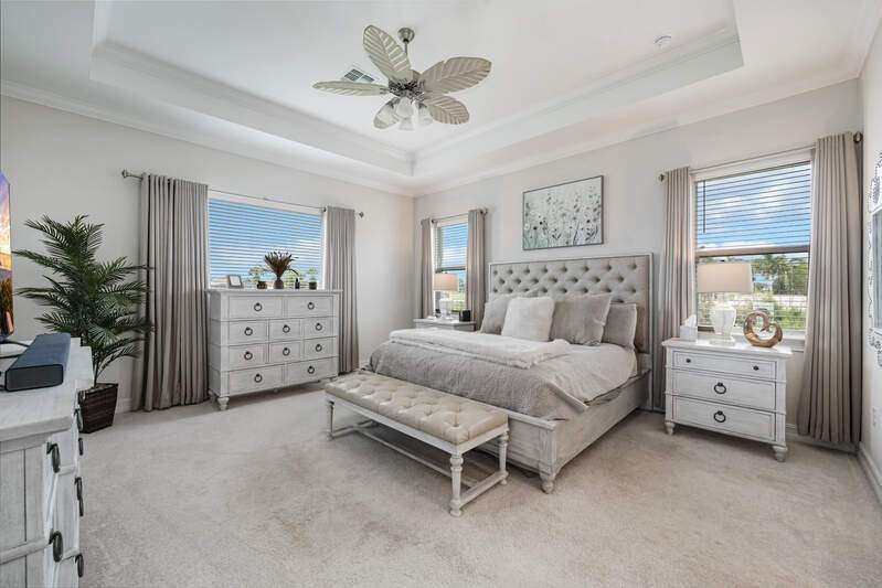 Elegant Lakefront Living in Royal Palm Golf Estates...Welcome to your dream 3-car Garage Single Family home in the prestigious, gated community of Royal Palm Golf Estates. This stunning single-family residence built in 2022 boasts over 3,000 sqft fof thoughtfully designed living space, featuring 3 spacious bedrooms, 3 full bathrooms, and a versatile den/office perfect for remote work or quiet retreat. Enjoy breathtaking views of the serene lake and the lush fairways of Eagle Lakes Golf Course right from your own backyard. Whether you're sipping coffee in the morning or entertaining guests at sunset, the scenery is nothing short of spectacular. Interior Highlights:Hurricane-impact windows and sliders for peace of mind, Elegant tile flooring throughout with cozy carpeted bedrooms, Sleek stainless steel appliances and neutral granite countertops, Dedicated coffee bar for your morning ritual, Flexible den/office space to suit your lifestyle. Community & Location Perks: Secure gated entry with low HOA fees, Just , 15 minutes to Marco Island's pristine beaches, Only 5 minutes to shopping, dining, and everyday conveniences This home offers the perfect blend of luxury, comfort, and location. Whether you're a golf enthusiast, beach lover, or simply seeking tranquility with modern amenities, this property checks every box.