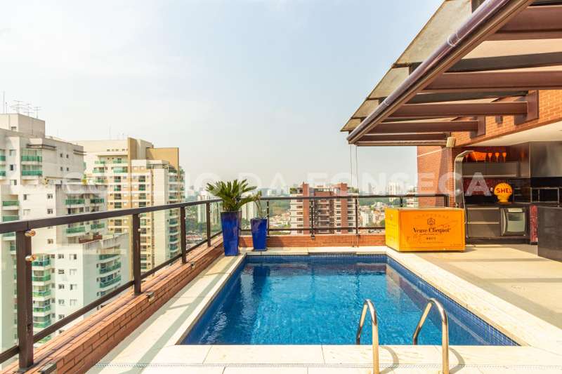 Cobertura no bairro Granja Julieta com 295m² área privativa/útil, 3 dormitório(s), 3 suíte(s), 4 vaga(s), 4 banheiro(s), piscina, churrasqueira, escritório, terraço, depósito, duplex, ar condicionado, dep. de empregados, reformado (a), varanda gourmet, pé direito duplo.