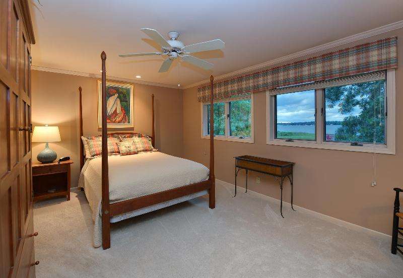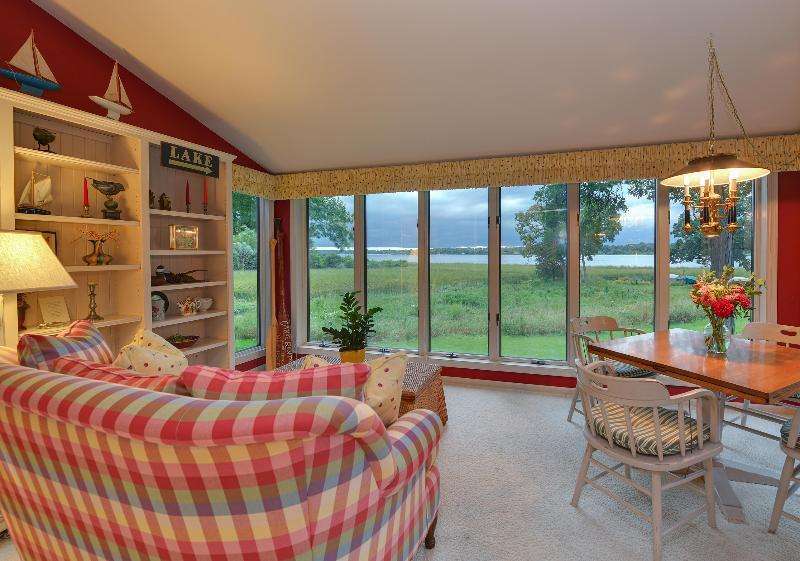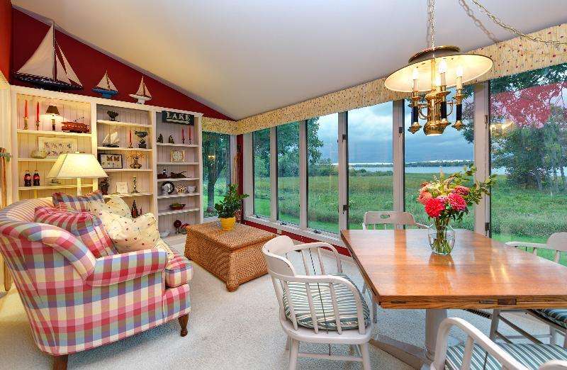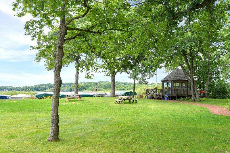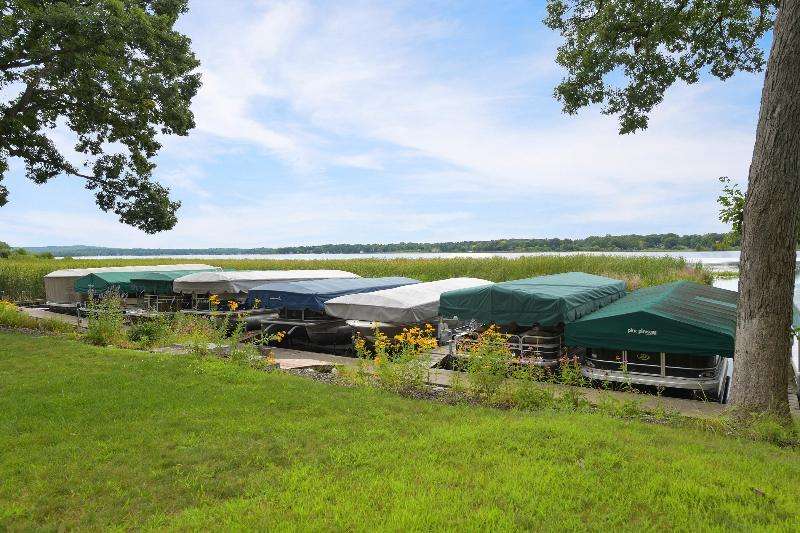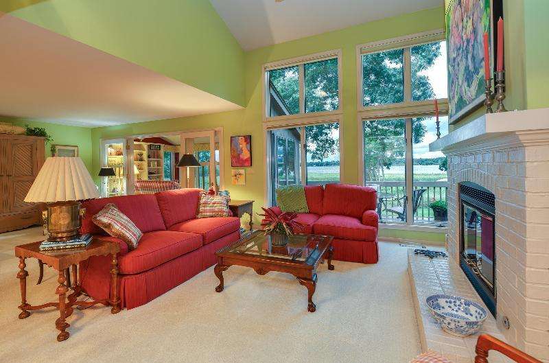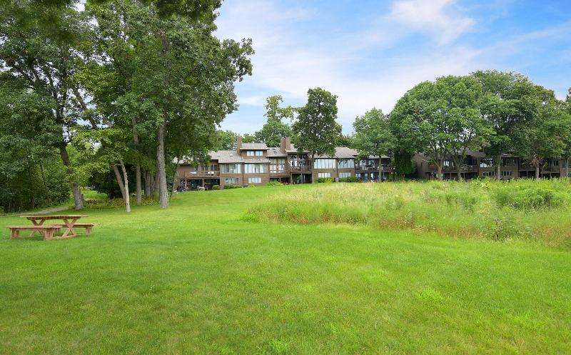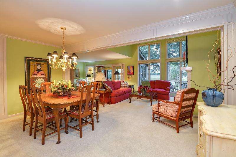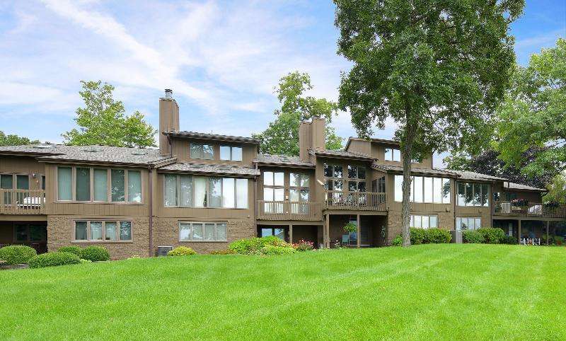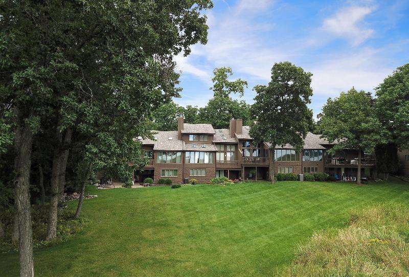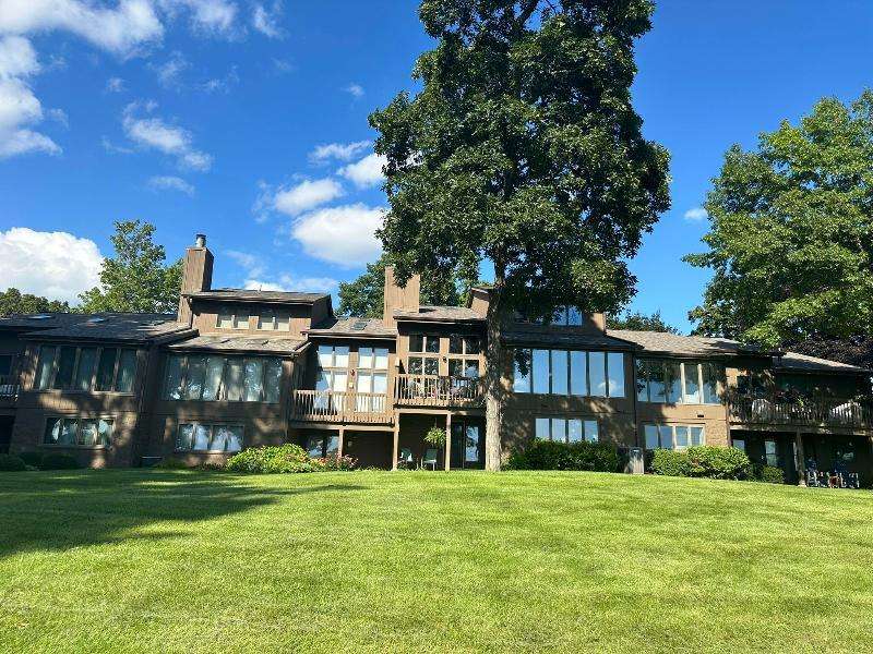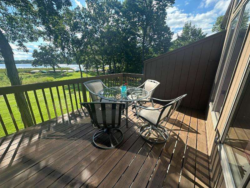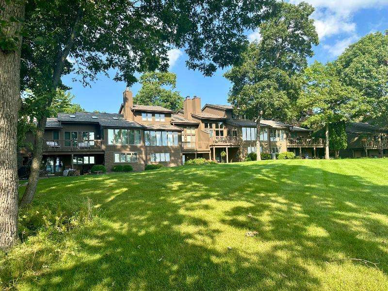 Million Dollar Views and Breathtaking Sunsets are yours in this Rare Lakeside Condo! This beautifully appointed 3 Bedroom, 3.5 Bath Townhouse offers sweeping lake views from walls of windows on multiple levels. Gorgeous renovated kitchen with stainless appliances, Corian counters, white cabinets and more. Updated bathrooms with skylight, walk in shower, jetted tub and tasteful vessels . Elegant details including crown moldings, transom doorways plus formal dining set a refined tone with playful elements of color in Sunroom & GR. Loft overlooks the 2 story great room with natural fireplace. Lower level family room/game room walks out to a patio. Additional features include roof 2024, deck, epoxy floor in garage. Enjoy a quiet setting with trails, docks, gazebo and 21 acres of serenity!