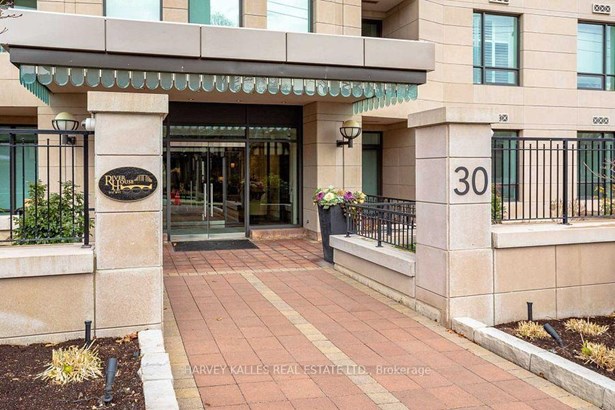 Timeless Elegance at The Riverhouse. 30 Old Mill Rd #103Where charm meets craftsmanship. Welcome to Suite 103 at the exclusive Riverhouse at The Old Mill. This refined 2-bedroom, 2-bathroom residence offers nearly 1,200 sq. ft. of meticulously curated space in one of Torontos most storied and scenic enclaves.Thoughtfully designed with a split-bedroom floor plan, this suite balances privacy and openness. A generous, light-filled den can serve as a formal dining space, home office, or reading retreat. The principal rooms are bright, expansive, and grounded by elegant hardwood floors and high ceilings. The kitchen is a chefs statement, equipped with premium Miele appliances, sleek cabinetry, and stone counters, perfectly suited for quiet mornings or sophisticated entertaining. The living area centres around a custom-built media unit with fireplace, leading to a private balcony that opens onto the serenity of the Humber River and its surrounding trails. Storage is seamless, not an afterthought, thanks to integrated built-ins throughout. The primary suite is a private sanctuary with a spa-worthy ensuite and custom closet solutions. All this, in a residence that feels more boutique hotel than condo. Concierge service, lounge areas, guest suites, fitness facilities, and immediate access to parks, transit, and Old Mill Station. Its a lifestyle as much as a location. A residence for those who measure luxury not in square footage, but in craftsmanship, location, and lasting value.
