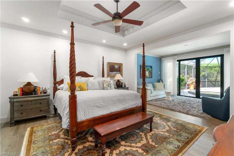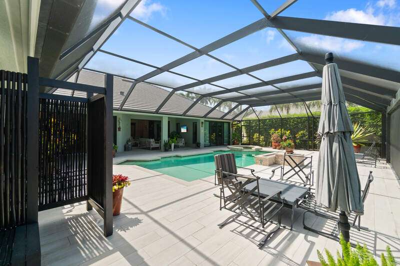 Beautifully renovated estate with stunning lake views in the prestigious Audubon Golf & Country Club in North Naples. Offers highly sought-after WESTERN exposure for breathtaking sunsets and optimal sun over the pool. This beautiful residence offers 3,204 sq ft of luxurious living space with 3 bedrooms, a den, a 2nd den/sitting room off the primary suite, 3 bathrooms, wood-look tile flooring, and custom wood detailing throughout. Additional highlights include hurricane impact windows/sliders and a new roof (2015). Step outside into your private backyard retreat-complete with a pool, spa, fire pit, outdoor shower, and a picture-frame screen enclosure providing unobstructed lake views. Inside, you'll find the beautiful chef's kitchen boasting stunning quartz countertops, custom wood cabinetry, and high-end appliances. The primary suite is a tranquil retreat featuring private access to the lanai, a cozy sitting area, generous walk-in closets, and a spa-inspired bath with dual vanities, a large frameless glass shower, and a separate jetted soaking tub. Audubon's prime location is just 5 minutes from Mercato and world-class beaches, and the community offers a gated/guarded entrance, an 18-hole championship golf course, tennis, pickleball, a Bayside boardwalk, and a newly renovated clubhouse with dining and a second beautiful poolside club and cafe.