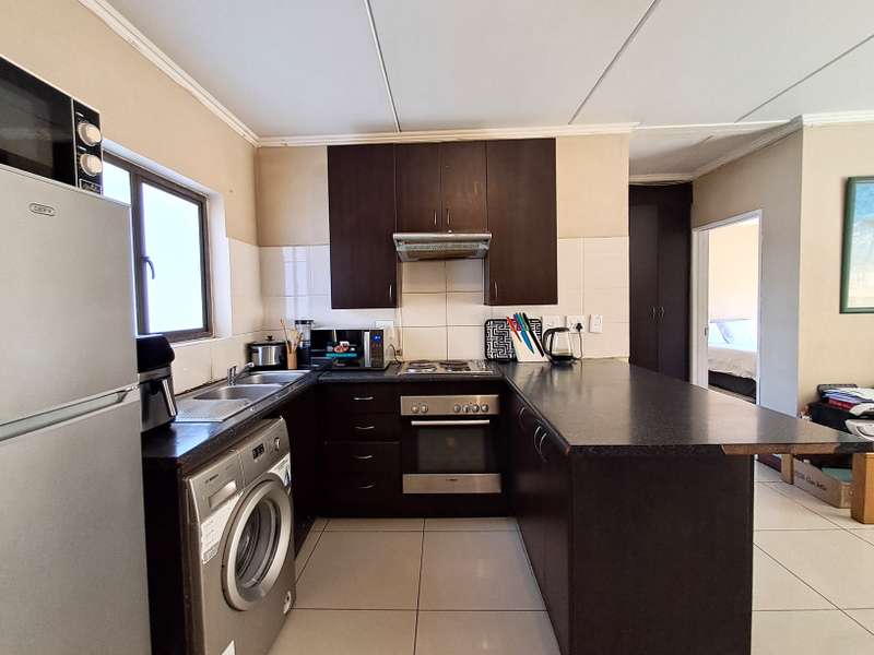 Step into this stylish 2-bedroom, 1-bathroom ground floor apartment located in the well-maintained Hill of Good Hope 2 complex in Erands Gardens. Designed for comfort and convenience, this home offers a relaxed lifestyle in the heart of Midrand. Bedrooms: Two spacious bedrooms with built-in cupboards and plenty of natural light. Bathroom: Full bathroom with a bath and shower combination. Kitchen: Open-plan kitchen with sleek finishes, granite countertops, and space for two appliances. Living Area: Comfortable lounge area opening onto a private patio. Outdoor Space: Ground floor unit with direct access to communal gardens – perfect for outdoor enjoyment. Parking: One covered parking bay plus ample visitor parking. Complex Features: 24-hour security, access-controlled entrance, clubhouse, swimming pool, and tennis court. Prime Location: • Walking distance to Carlswald and San Ridge shopping centres • Quick access to the N1 and R55 highways • Close to schools, public transport, and major business hubs Ideal for first-time buyers, investors, or anyone seeking a secure and stylish home in a central location. Contact Siya to view this exceptional property.