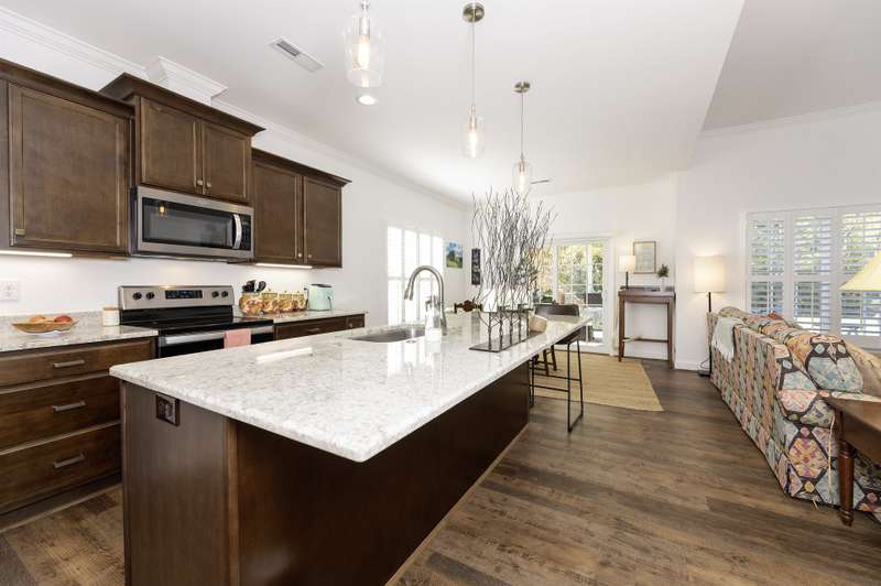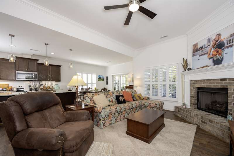 Modern craftsman charm meets effortless living at 423 Fernwood. This 2-bedroom, 2-bath home features an open floor plan with vaulted ceilings in the great room, a stunning fireplace, and popular upgrades throughout. The spacious kitchen boasts a large island and a nice-sized pantry, while the primary suite offers a double vanity and a beautifully tiled walk-in shower. Enjoy peaceful mornings on the screened porch overlooking the serene backyard. With low-maintenance living and minimal HOA fees, this home blends comfort, style, and simplicity in a quiet, welcoming setting.