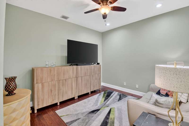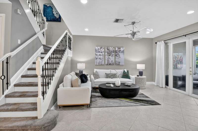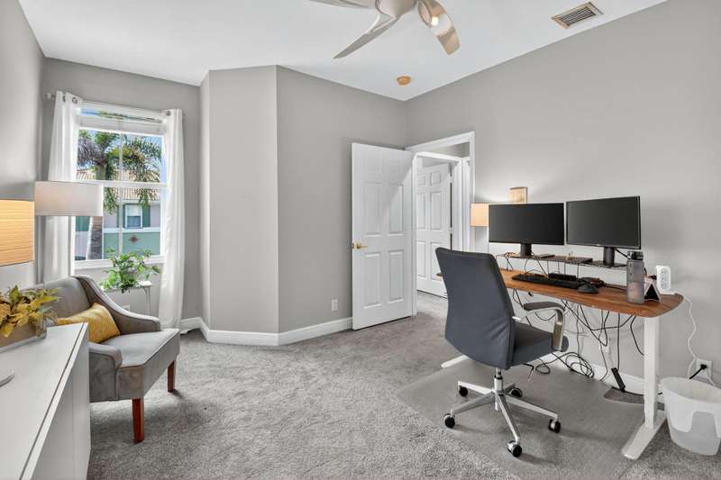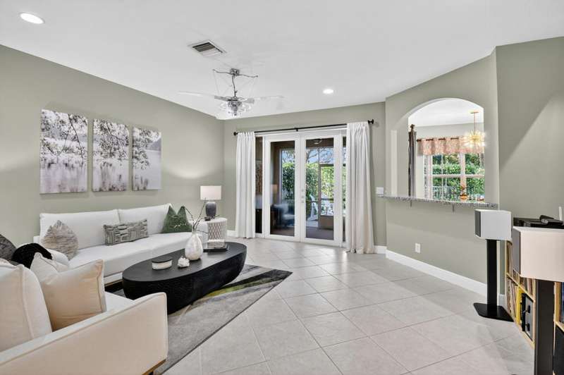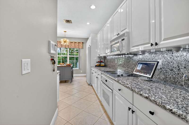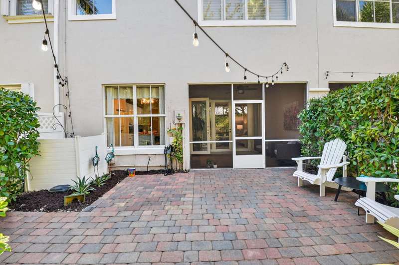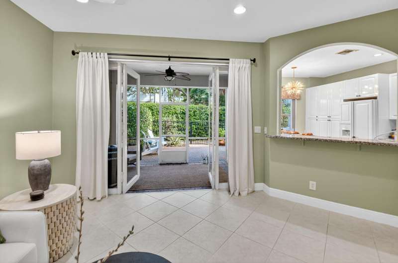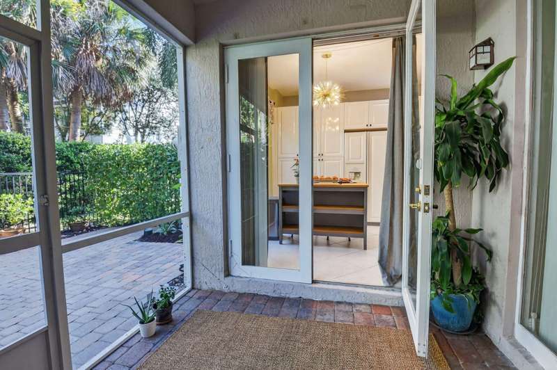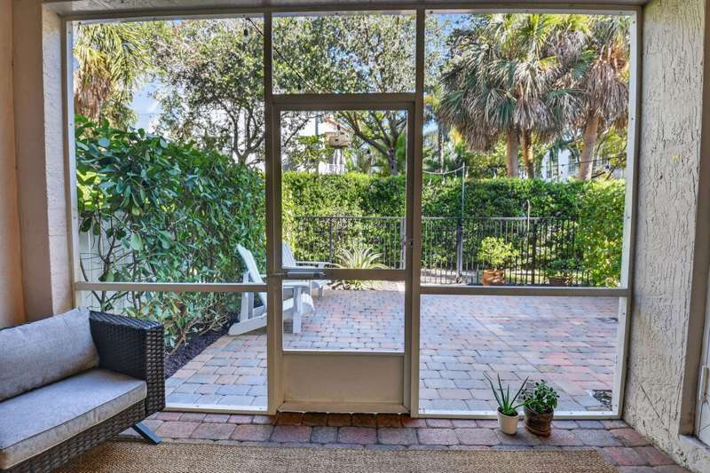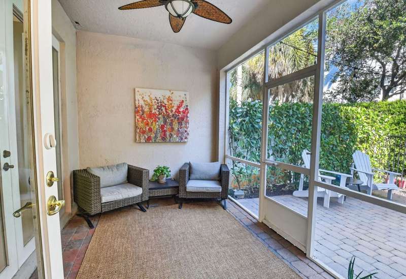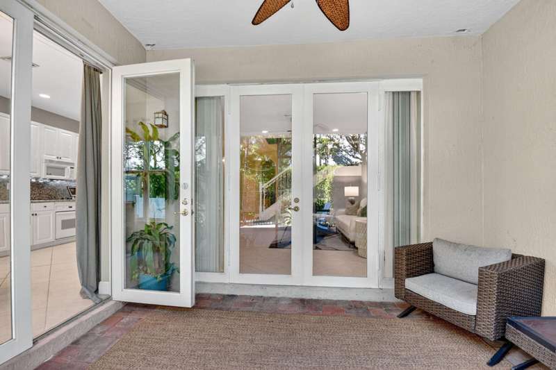 This dreamy, zen-like home offers an unparalled lifestyle, located just steps from the picturesque Intracoastal Waterway with PRIVATE BEACH access & resort style pool! Outstanding features include gleaming white lacquered kitchen cabinets with custom refrigerator panel that blends seamlessly, french doors,a screened lanai to enjoy coastal breezes, plus NEW ROOF & impact glass to provide security in a storm. Relax in the cozy den or use as an office. Enjoy your morning coffee on the private, lush fenced patio. The breathtaking Primary bedroom boasts a soaring ceiling, sitting area, closet the size of a small bedroom, & a bathroom with his and hers vanities, deep whirlpool tub & separate shower. All this is conveniently located near the shops, restaurants & cultural activities of