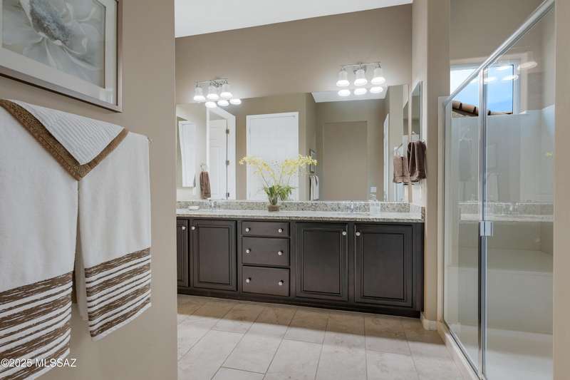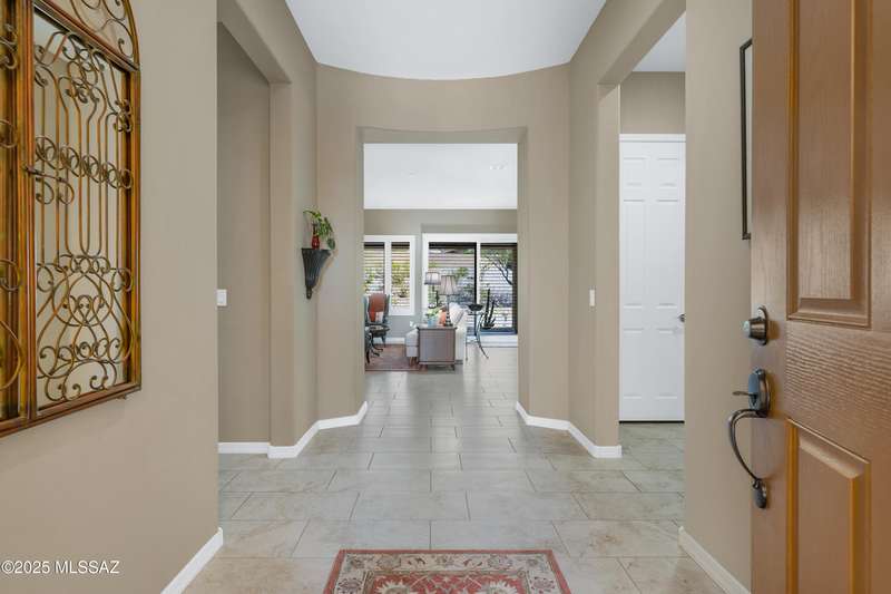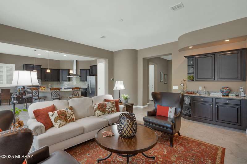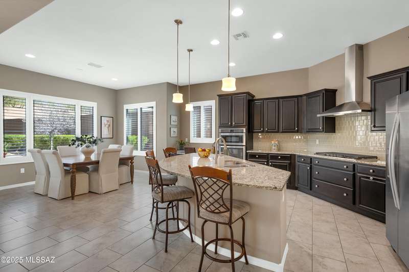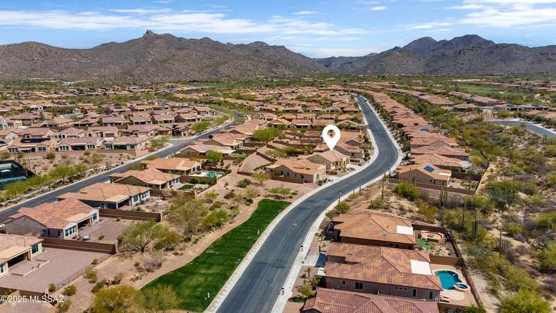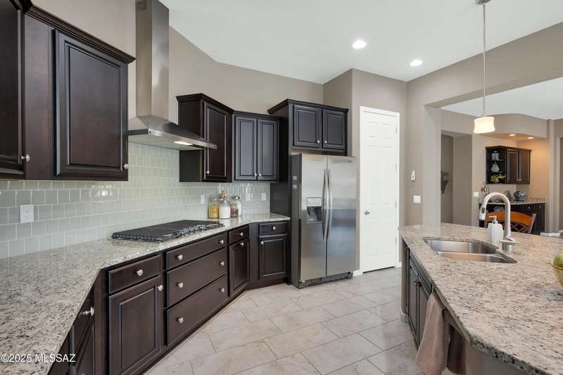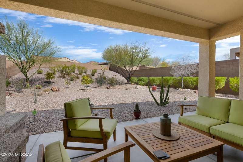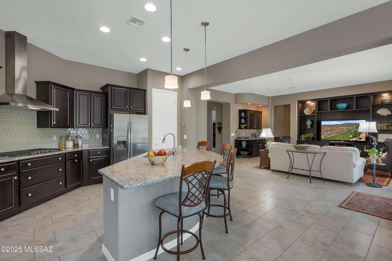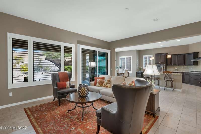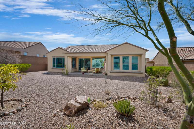 Welcome Home! This meticulously maintained Pursuit model, which is part of Del Webb's upper-tier encore series has 2 Bedrooms plus a Den. This open floor plan boasts 10-foot ceilings and 8-foot interior doors. The gourmet kitchen offers an abundance of cabinets, granite countertops, a tile backsplash, large curved island with a breakfast bar, SS appliances, gas cooktop, built- in oven and a pantry. The spacious great room is designed for entertainment, complete with a built-in entertainment center and wet bar. Step outside to your generous covered patio that includes a built- in gas fireplace. Additional upgrades include an extended garage, plantation shutters, a water softener and so much more! Explore all Del Webb at Dove Mountain has to offer!