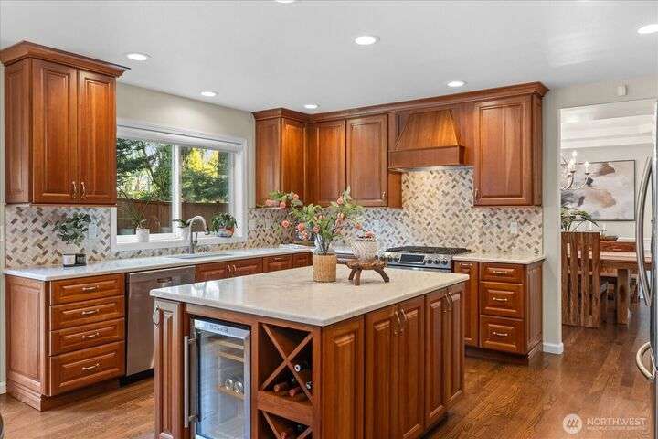 Elegance & luxury radiate from this stunning Gold Creek home, offering a perfect blend of comfort & modern sophistication. Upon entering, you are greeted by beautiful hardwood floors that gracefully lead you through the home, complemented by wainscotting & thoughtful built-ins. This home features 4 bedrooms, including a conveniently located bedroom on the main level. The heart of the home is the generous-sized kitchen, a culinary enthusiast's dream: gleaming quartz countertops, rich cherry cabinets, a double oven, & wine fridge. Stay comfortable year-round w/ AC, enjoy the convenience of living near top-rated schools, parks, & trails, all just moments away from your doorstep. Make it yours & experience the epitome of refined living!