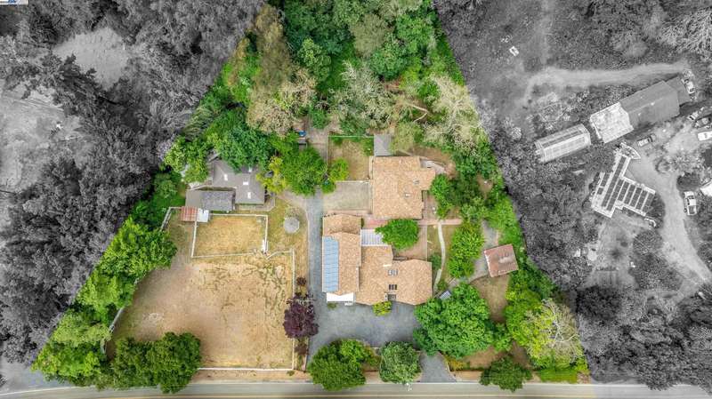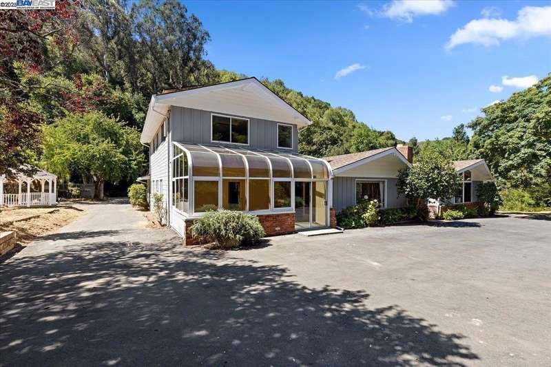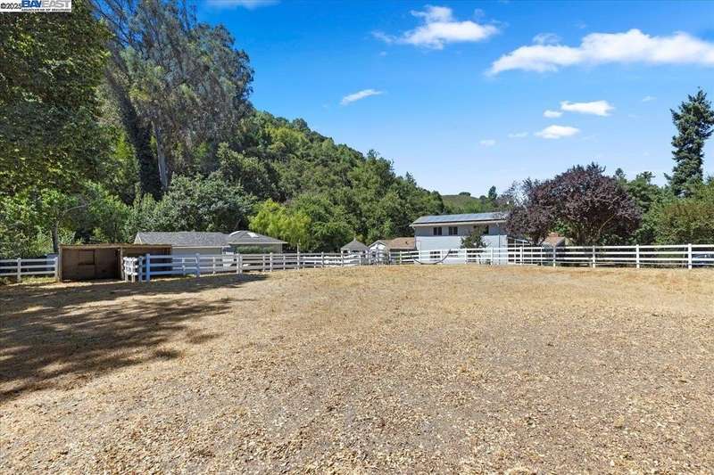 Unbelievable creek setting for this private family compound and horse setup. Creek surrounds 3 sides in trully a nature setting. Private gated entry to compound that offers Main home 5 bedrooms 2 full bathrooms over 3700 square feet of living area and detached second home 3 bedroom 2 full bath over 1100 square feet of living area. There is a detached garage/workshop. Bring your horses and farm animals. There is a large riding arena stalls and paddocks. In the country yet within 20 miniutes to Castro Valley Shopping district and the Stoneridge Mall in Pleasanton.
