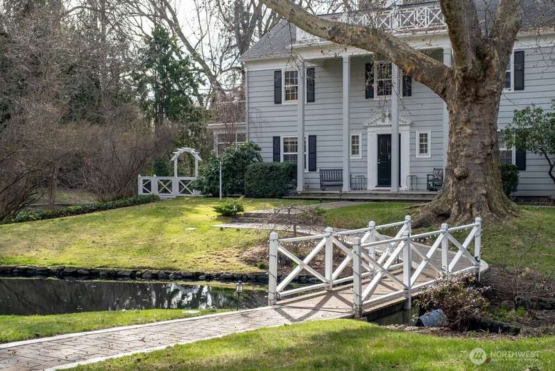This beautiful garden just happens to come with a stunning Colonial home. New bridges span the creek and ponds that run through the property. Professionally landscaped with special attention given to the old growth trees. A well-fed sprinkler system ensures lush landscaping while keeping maintenance low and water costs down, making yard care both simple and economical. Plumbing and electrical updates done throughout the home. All new curbing and patio as well as a screened-in sun porch to enjoy the cool, shady mornings and crisp evenings. Enjoy four seasons in this stunning home with flowering trees and happy ducks in the spring, shade-giving trees in the summer, vibrant colors in the fall, and a snow-draped lawn in winter.