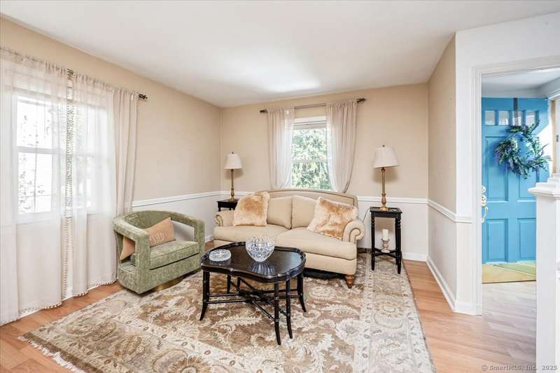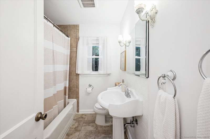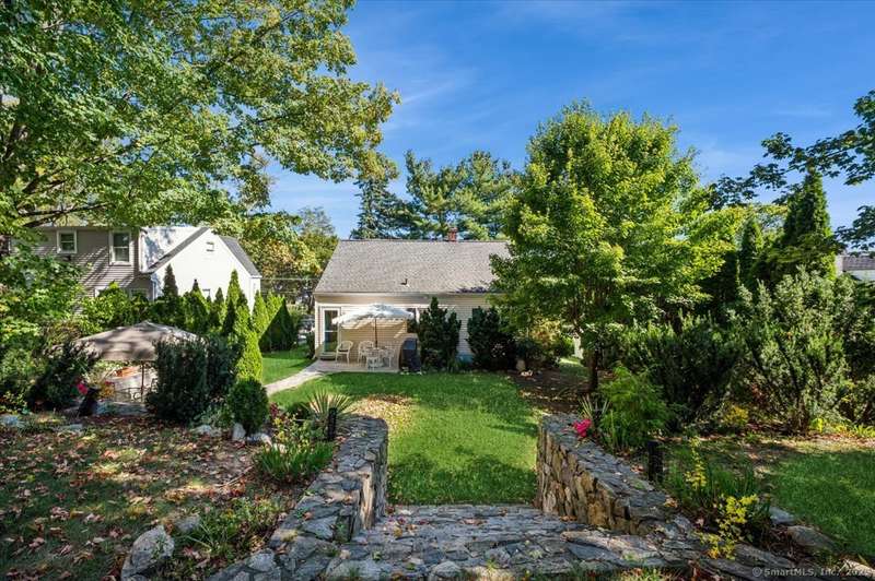 Nicely maintained home in immaculate condition. Lovely grounds, stone work and plantings. Open floor plan with the living room, dining room and kitchen. The kitchen is light and bright with white cabinets, stainless appliances, and a breakfast bar. The door leads to the private backyard with 2 patios. The master bedroom on the first floor and is set up like a den. There is an 2nd first floor bedroom as well. The bathroom has a pedestal sink and white tub . The second floor has a 3rd bedroom, office and full bath. There is a finished rec room in the lower level. A large garage and central air complete this wonderful home in a most convenient location.
