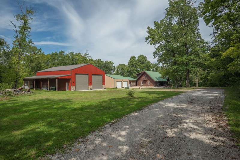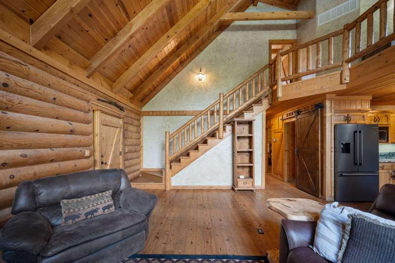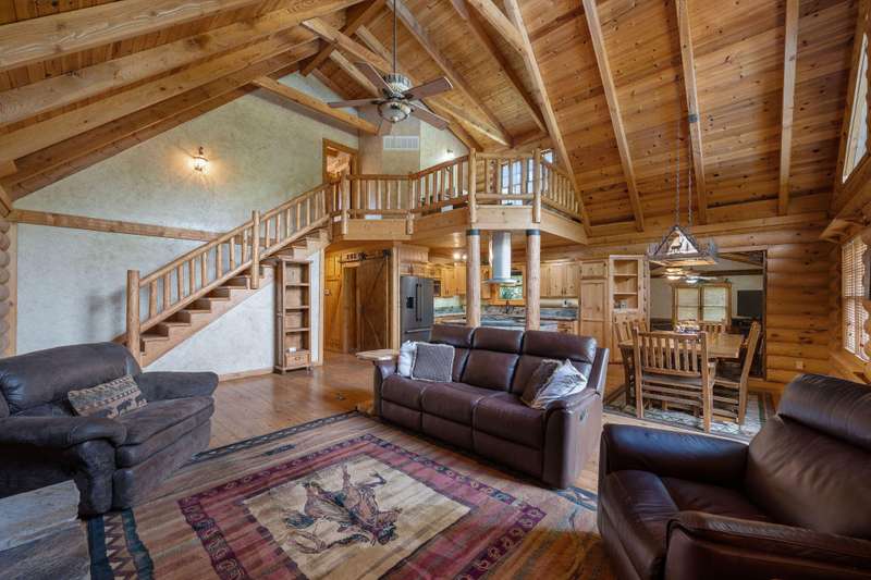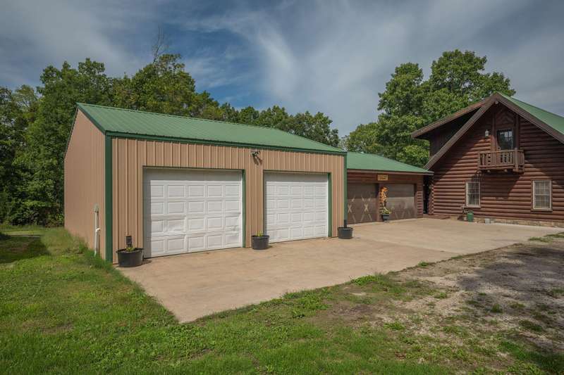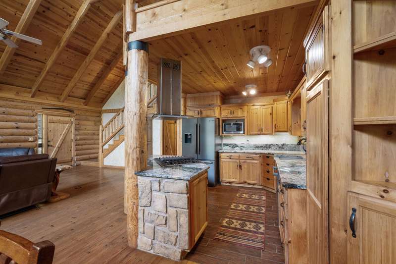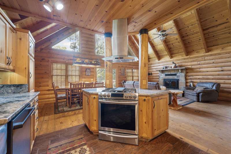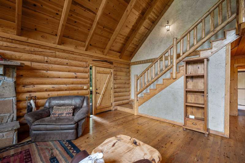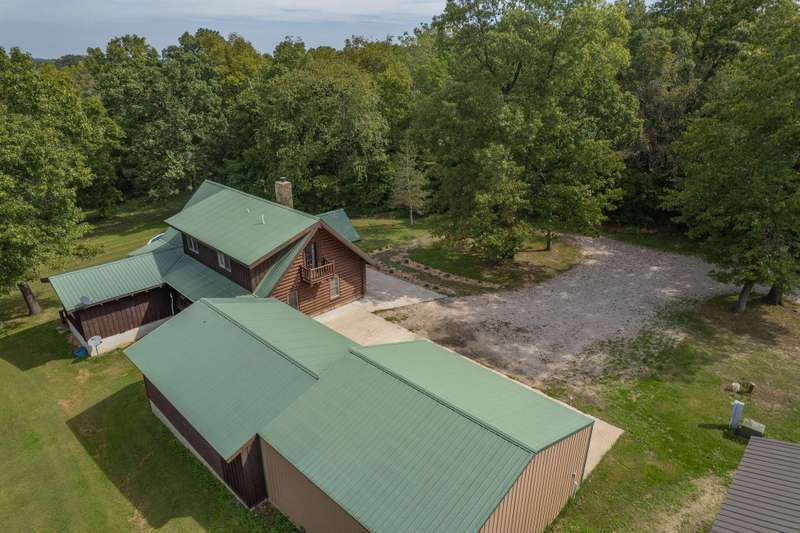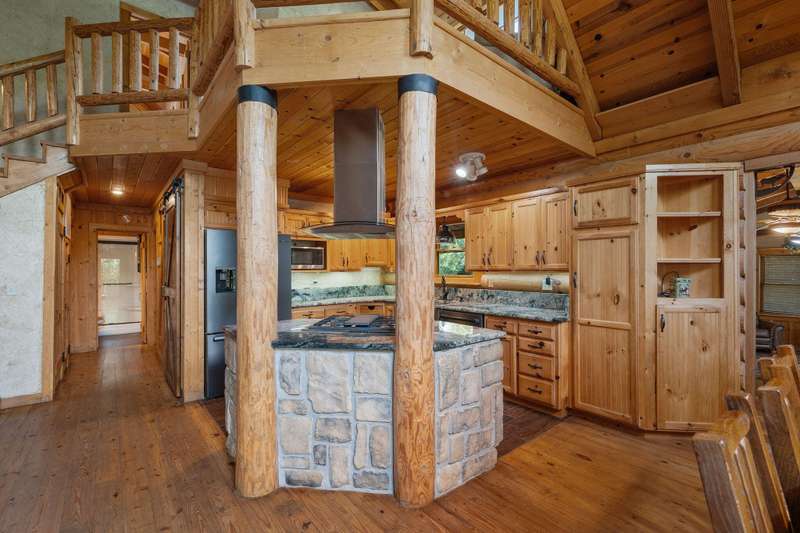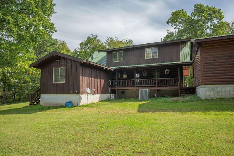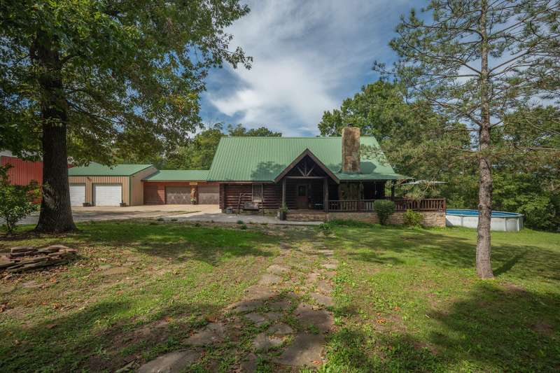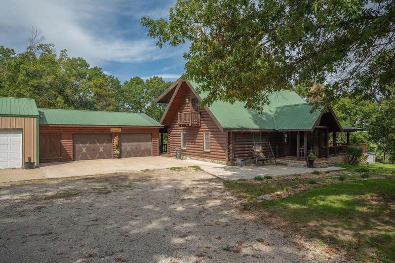 Welcome to your private retreat, where country charm meets convenience. Just 40 minutes from NWA and only minutes to town, this cozy log home sits on 5 acres and offers seclusion without sacrificing access. With no nearby neighbors, you'll enjoy peaceful mornings watching deer from the deck and evenings cooking by the fireplace. The open-concept design is perfect for gathering with family and friends. The kitchen is a true centerpiece, featuring granite countertops, warm wood cabinetry, and a striking island with a stone accent set between two large wood beams. The island includes a cooktop that overlooks the living room, so you can stay connected while preparing meals. On the main floor, you'll find two additional bedrooms, a full bathroom, and a convenient laundry room. The master suite, privately located upstairs, is a relaxing retreat with a large soaking tub, walk-in shower, and generous vanity. Upstairs also includes a loft area overlooking the living room. Outdoors, mature shade trees and blooming magnolias frame the property, alongside a generous garden area brimming with tame blackberries and wild raspberries. A large shop building sets the stage for big celebrations, hobbies, or storage, and multiple garages give you plenty of space for vehicles and toys. Whether hosting a celebration or savoring a quiet evening, this home is made for memories. Come see it for yourself today!