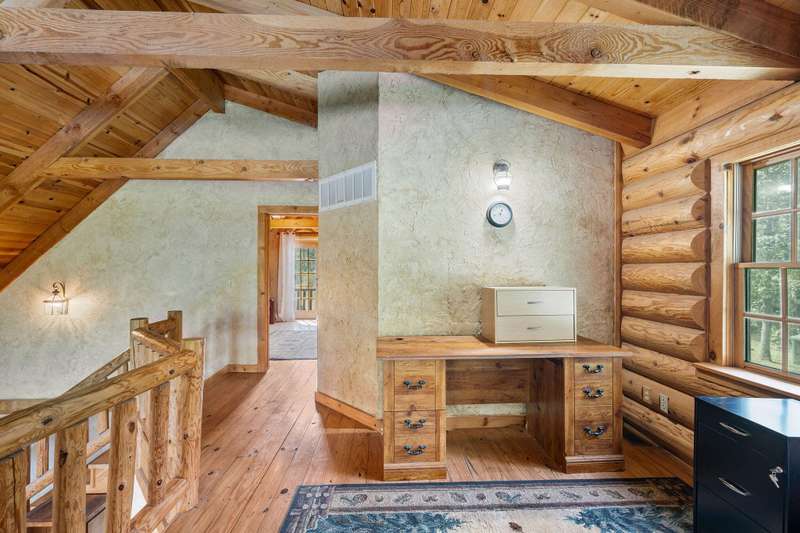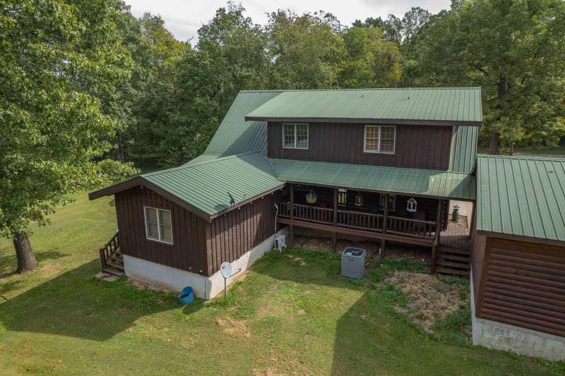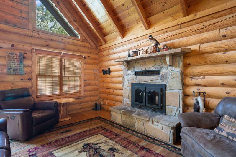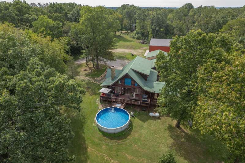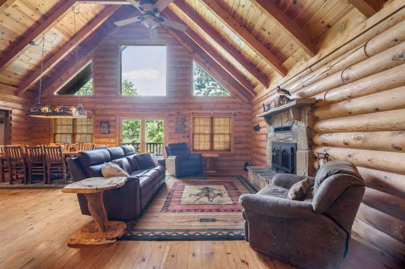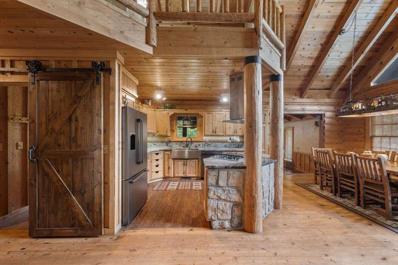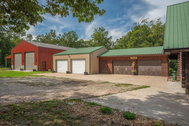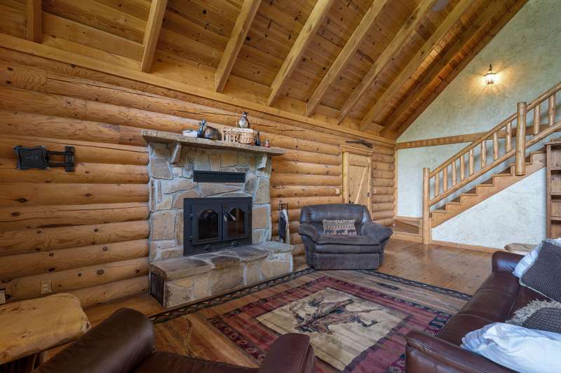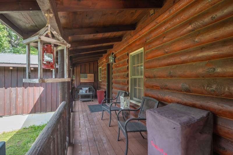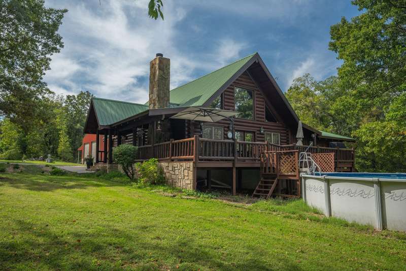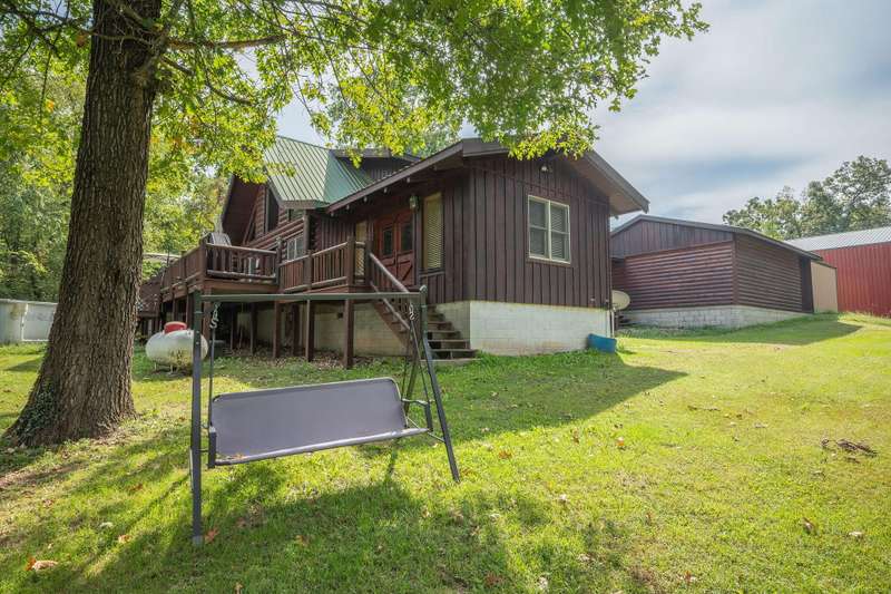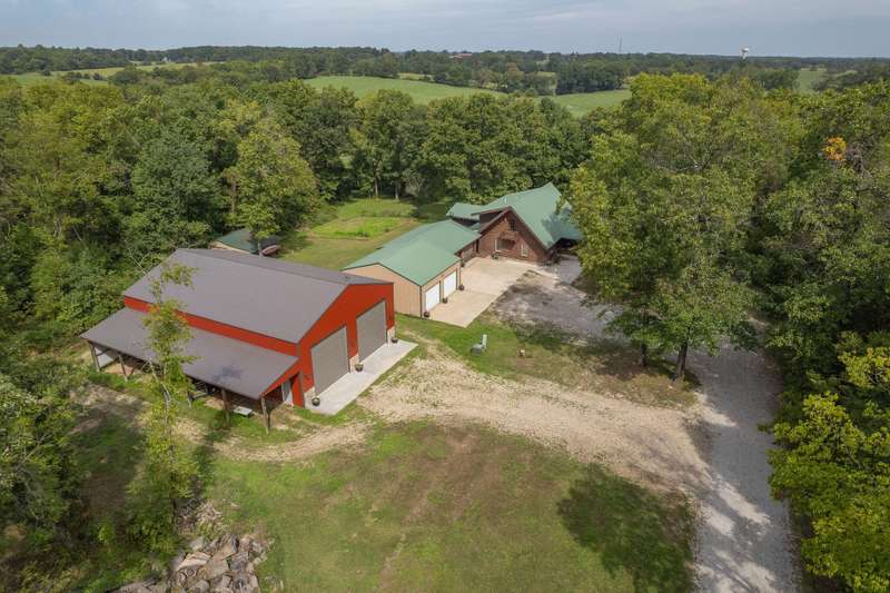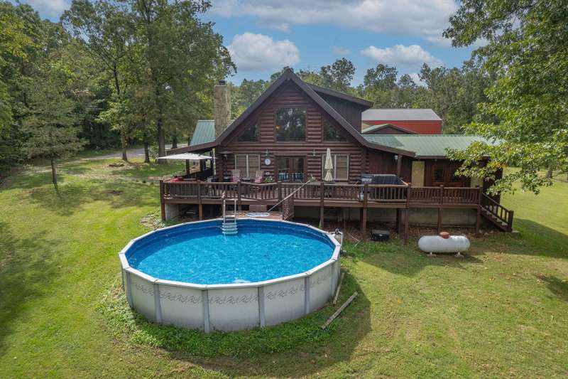 Welcome to your private retreat, where country charm meets convenience. Just 40 minutes from NWA and only minutes to town, this cozy log home sits on 5 acres and offers seclusion without sacrificing access. With no nearby neighbors, you'll enjoy peaceful mornings watching deer from the deck and evenings cooking by the fireplace. The open-concept design is perfect for gathering with family and friends. The kitchen is a true centerpiece, featuring granite countertops, warm wood cabinetry, and a striking island with a stone accent set between two large wood beams. The island includes a cooktop that overlooks the living room, so you can stay connected while preparing meals. On the main floor, you'll find two additional bedrooms, a full bathroom, and a convenient laundry room. The master suite, privately located upstairs, is a relaxing retreat with a large soaking tub, walk-in shower, and generous vanity. Upstairs also includes a loft area overlooking the living room. Outdoors, mature shade trees and blooming magnolias frame the property, alongside a generous garden area brimming with tame blackberries and wild raspberries. A large shop building sets the stage for big celebrations, hobbies, or storage, and multiple garages give you plenty of space for vehicles and toys. Whether hosting a celebration or savoring a quiet evening, this home is made for memories. Come see it for yourself today!