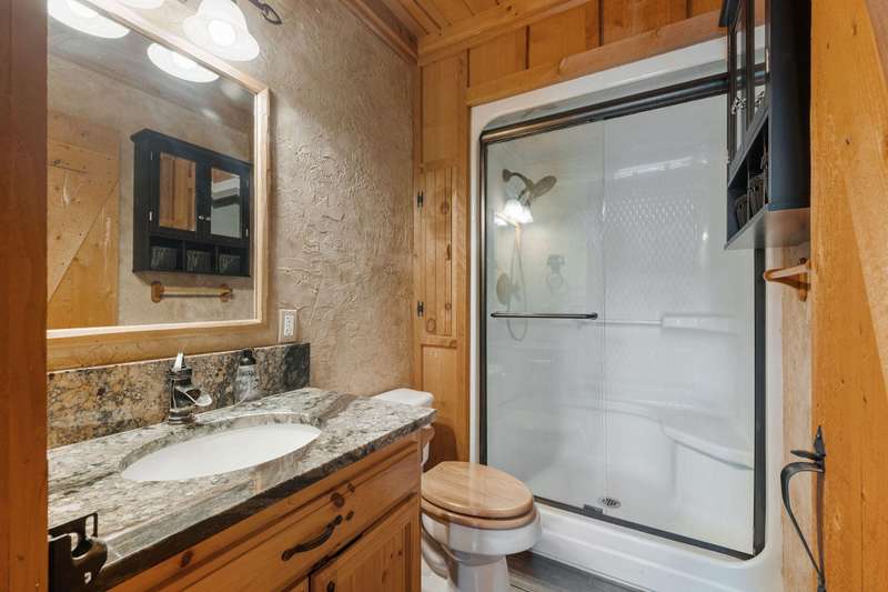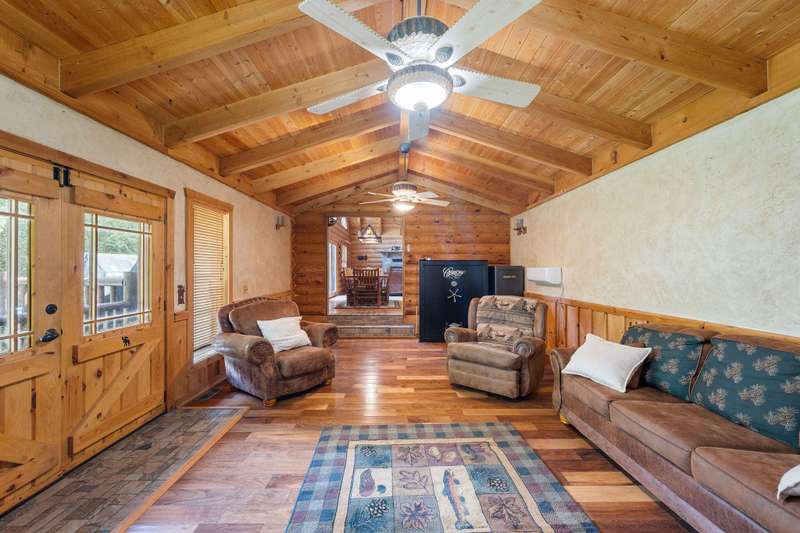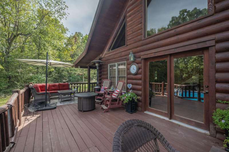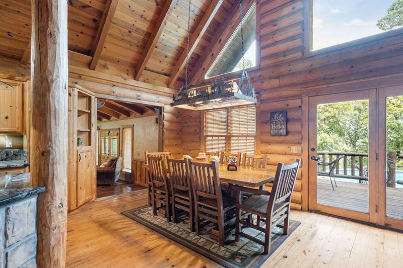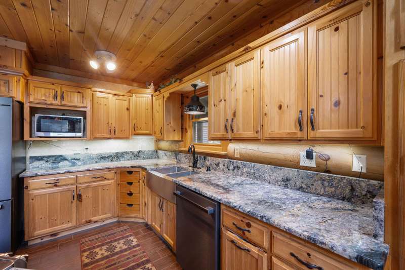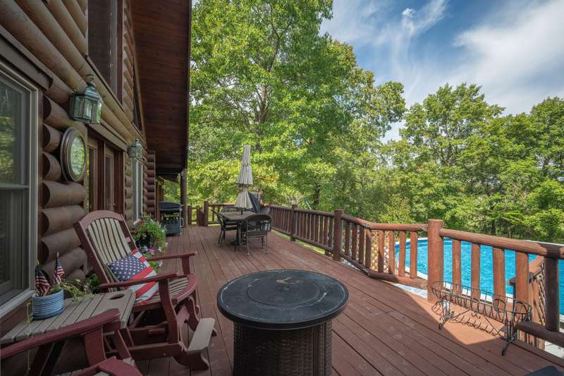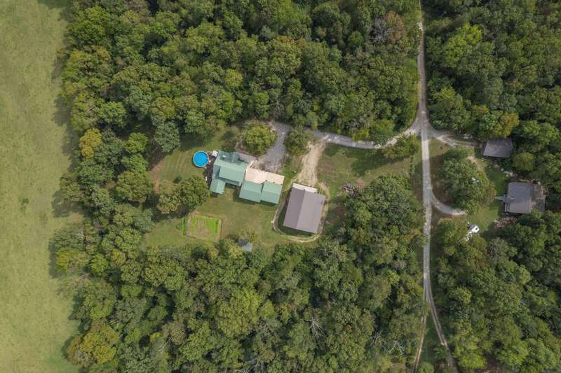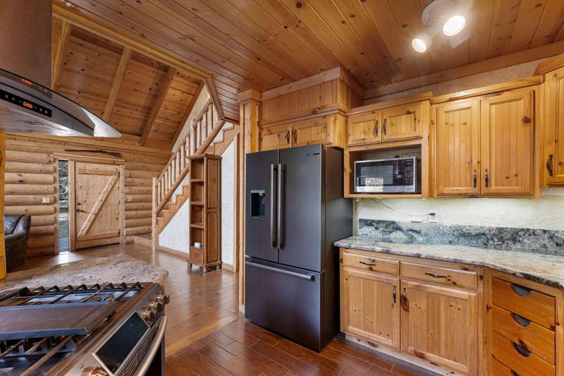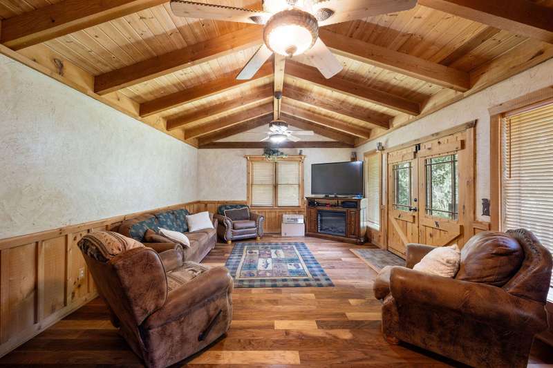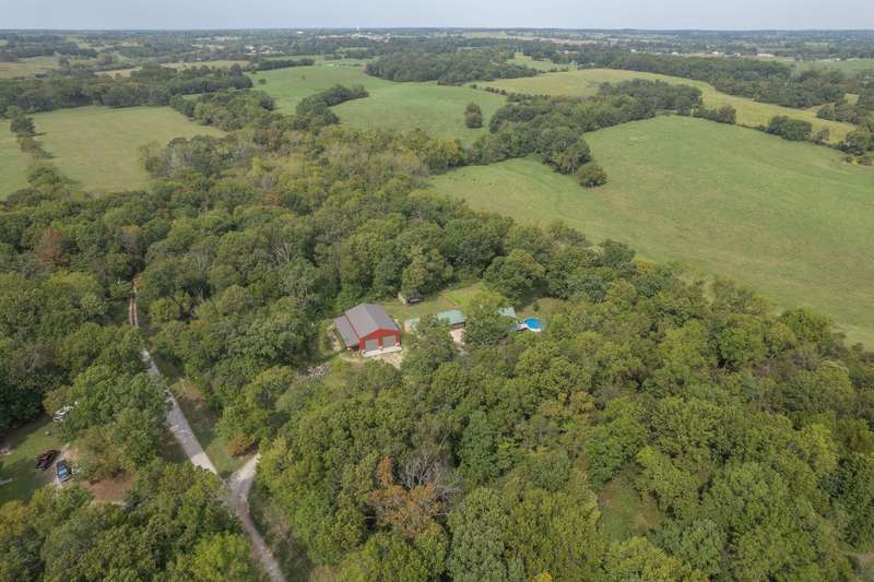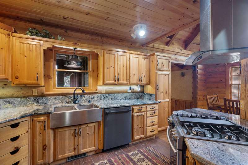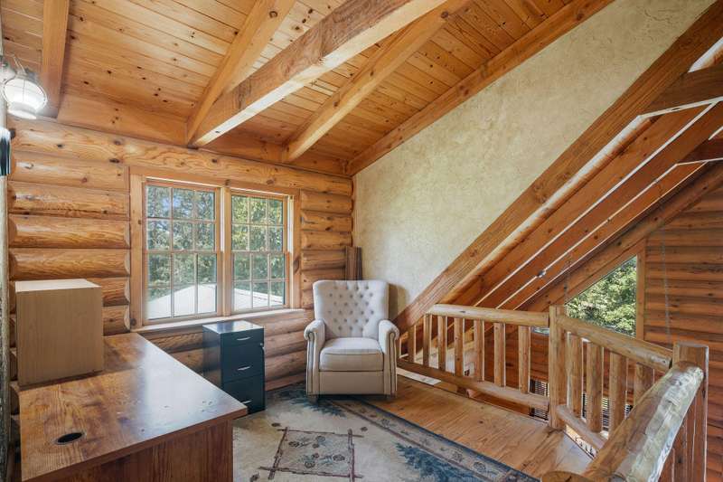 Welcome to your private retreat, where country charm meets convenience. Just 40 minutes from NWA and only minutes to town, this cozy log home sits on 5 acres and offers seclusion without sacrificing access. With no nearby neighbors, you'll enjoy peaceful mornings watching deer from the deck and evenings cooking by the fireplace. The open-concept design is perfect for gathering with family and friends. The kitchen is a true centerpiece, featuring granite countertops, warm wood cabinetry, and a striking island with a stone accent set between two large wood beams. The island includes a cooktop that overlooks the living room, so you can stay connected while preparing meals. On the main floor, you'll find two additional bedrooms, a full bathroom, and a convenient laundry room. The master suite, privately located upstairs, is a relaxing retreat with a large soaking tub, walk-in shower, and generous vanity. Upstairs also includes a loft area overlooking the living room. Outdoors, mature shade trees and blooming magnolias frame the property, alongside a generous garden area brimming with tame blackberries and wild raspberries. A large shop building sets the stage for big celebrations, hobbies, or storage, and multiple garages give you plenty of space for vehicles and toys. Whether hosting a celebration or savoring a quiet evening, this home is made for memories. Come see it for yourself today!