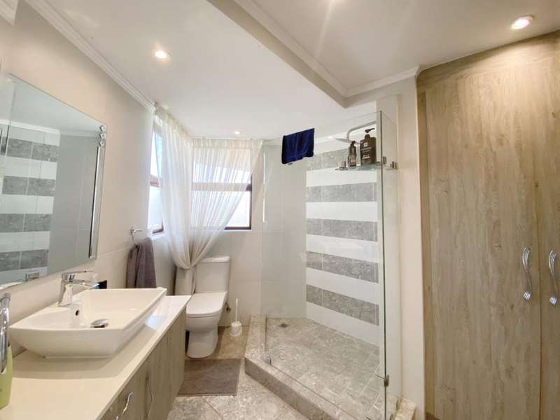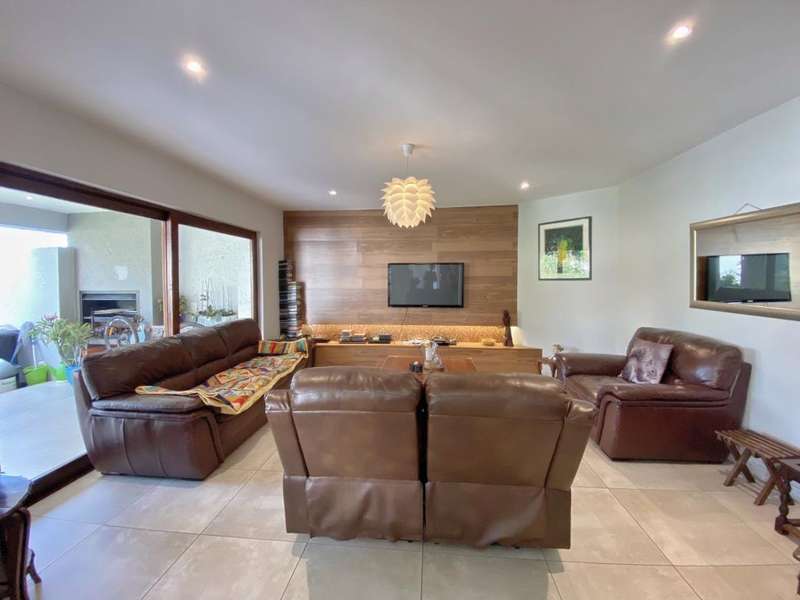This cluster-style family home is the ideal lock-up-and-go for the family looking for peace-of-mind coupled with modern finishes throughout! Set on manicured gardens offering good privacy, this home features an open plan floor layout with the entrance hall leading onto the warm family room with sliding doors leading onto the covered patio and garden. Entertainment can be enjoyed from the stylish eat-in kitchen complimented with warm wood and high gloss finishes, Caesar stone tops, eye-level oven, pantry and separate scullery with space for appliances. The dining room flows effortlessly onto the kitchen and second lounge/formal living room. Complimented by a sun-lit interior with sliding doors lending towards indoor/outdoor living, this home also features 3 bedrooms all en suite and a separate study for those needing to work-from-home. With double automated garage and set within a secure cluster complex within a gated street, this home is a modern beauty and solar-powered/off the grid.