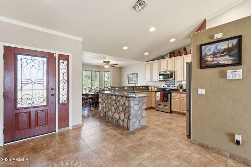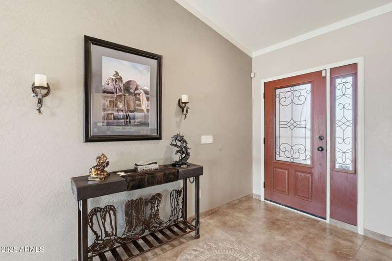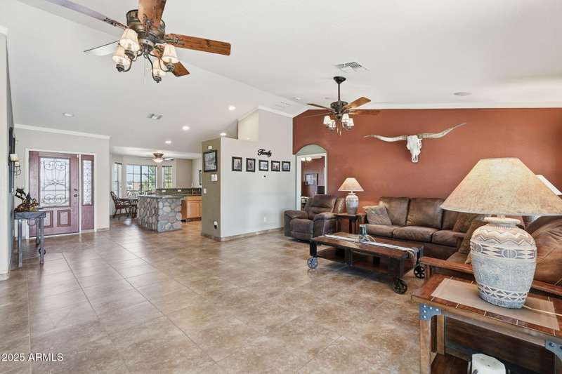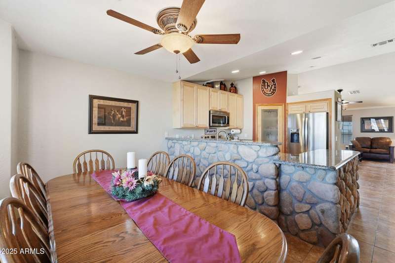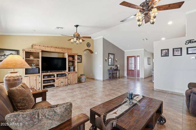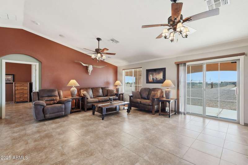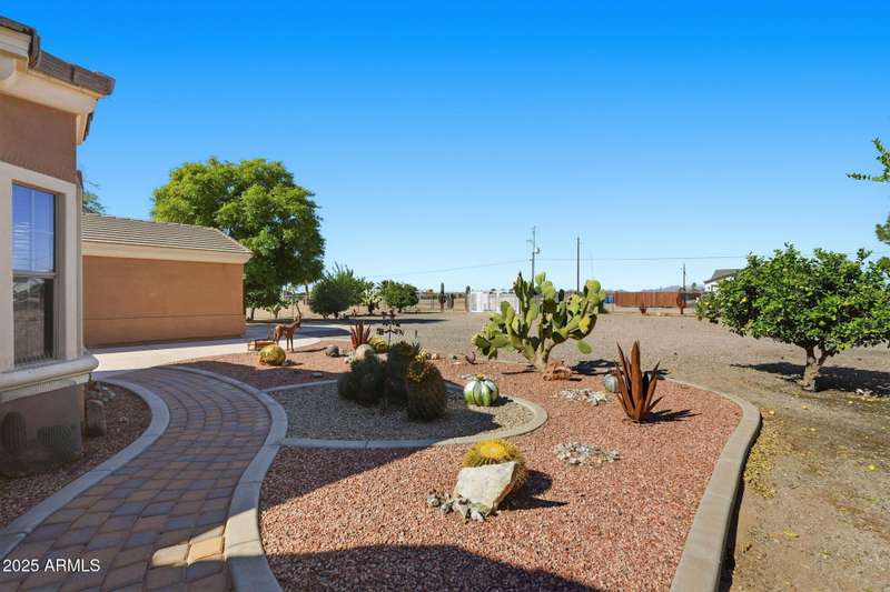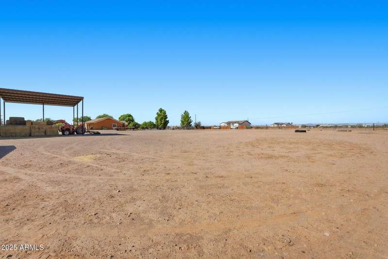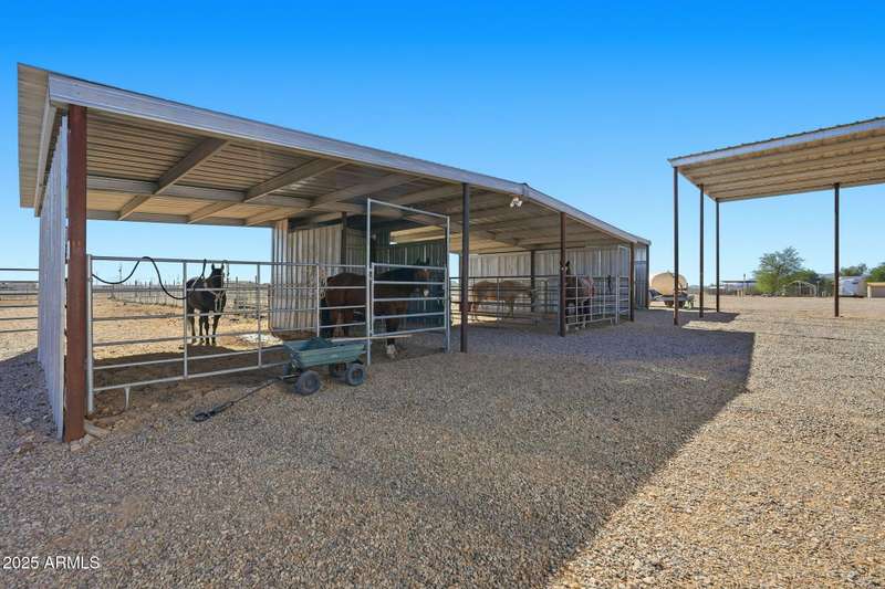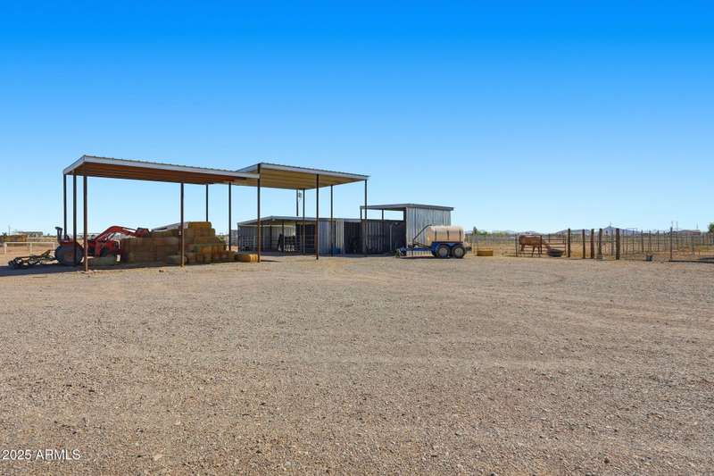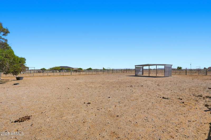 Proudly presenting this truly one of a kind property. This elite horse property is located on over 5 acres. You enter through a private gate, that leads you with a breathtaking front custom designed landscape. This front design combines the best of both worlds! You have matured, gorgeous fruit trees : Pink Grapefruit, White grapefruit, yellow limes, lemon, tangerines, oranges, black Olive trees along with Prickly Pear Cacti and large blooming barrel cactus as well! Property has auto water timers. Thoughtful rock / pavers that lead to the front entrance. Upon entry you will notice the attractive tile flooring that flows throughout the entire home. Step into this chefs kitchen that adorns custom large stone accents, and eat in dining room located by the sun lit bay window. Stainless appliances , walk in pantry with plenty of room for storage. The expansive living area is perfect for entertaining, and Sunday football gatherings. This lovely split floorpan offers privacy. The charming primary offers substantial space for King and Queen furnishings, upgraded tile shower , soaking tub, walk in closet and private toilet room. This impeccable home features all secondary, oversized bedrooms, each able to accommodate a king size bed. Laundry room is spacious and has built in sink with storage! Walk out the back door to an absolute horse owners dream. PRIVATE well, no sharing here! Absolute amazing water some of the best water is in the entire valley that comes from the Tonopah Hot Springs. Well produces 28 GPM! This unique property has a steel built workshop 220 V Box, literally built to withstand anything, includes 2 oversized RV/trailer garage doors. The Professionally built roping arena is a massive 241 X 171. The outstanding design has the following features : Steer pen, return alley, shoot, striping shoot, Shoot is made of 6" steel custom made header/healer boxes. Tie racks are also steel which are concreted in, the utmost safety for your Horses' . There is literally NO limit to what this incredible property has to offer. Professional roping income would be more than substantial !!! Please, see list of items that do not convey.