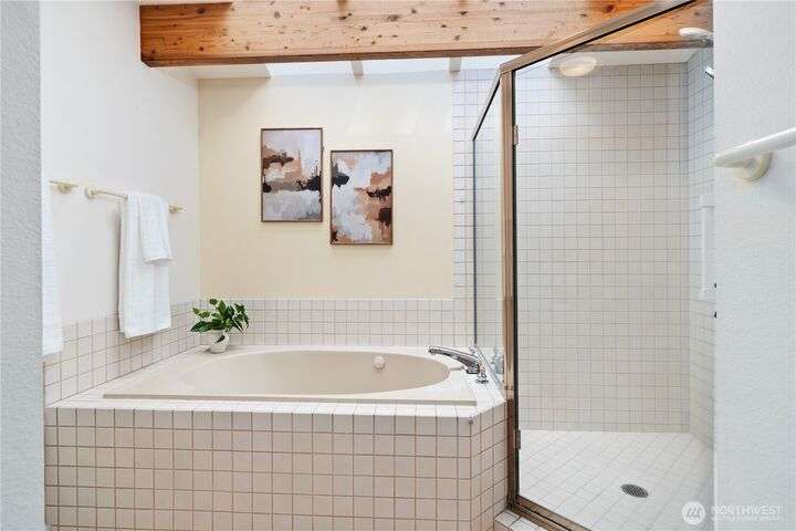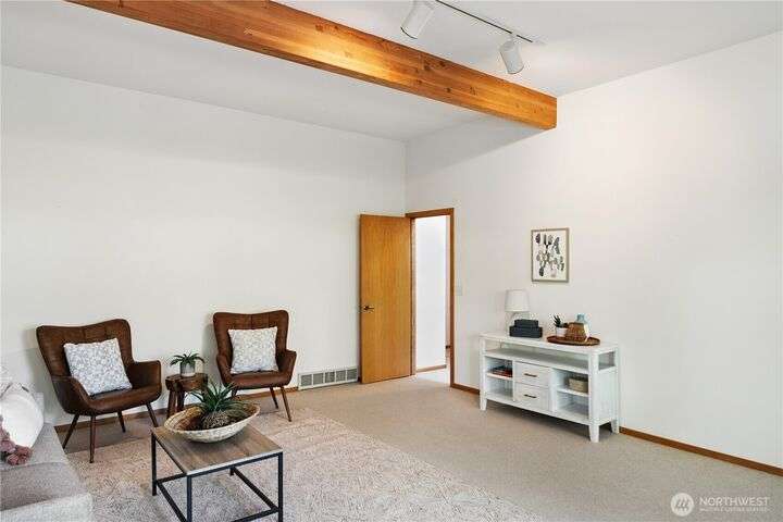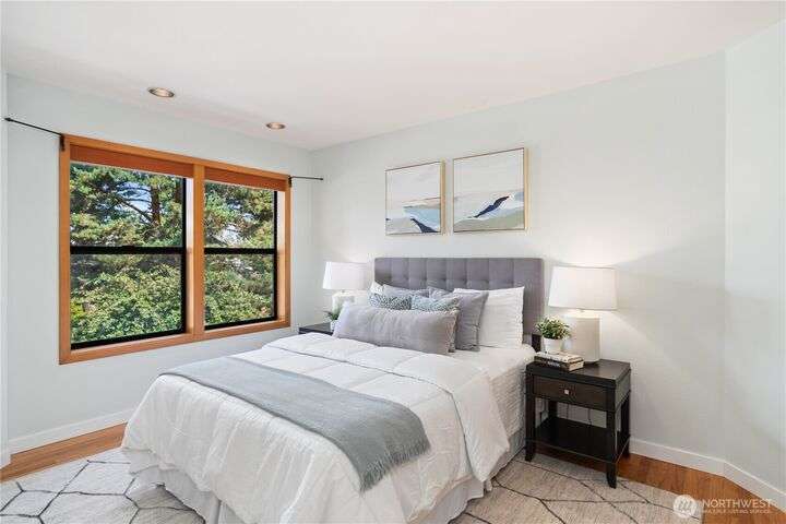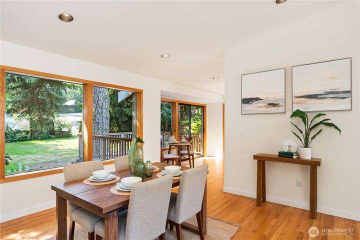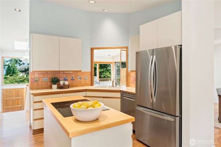 Charming 2 bed/2.5 bath Kala Point townhouse with modern upgrades, peekaboo water & mountain views, plus ample outdoor space. Bright & spacious, it features large windows, high ceilings & a generous living room with a cozy wood-burning fireplace that flows seamlessly to the dining & kitchen areas. The kitchen includes newer appliances along with a brand-new induction cooktop. The primary suite offers a walk-in closet & 5-piece ensuite. Downstairs you'll find the second bedroom, full bath, oversized bonus room & attached garage. Outdoor living shines w/ 2 large decks, one with water/mountain views, the other more private & shaded off the kitchen, along with a newly constructed courtyard surrounded by mature shrubs offering privacy.