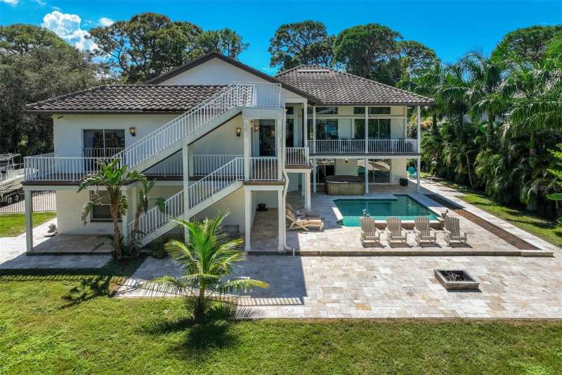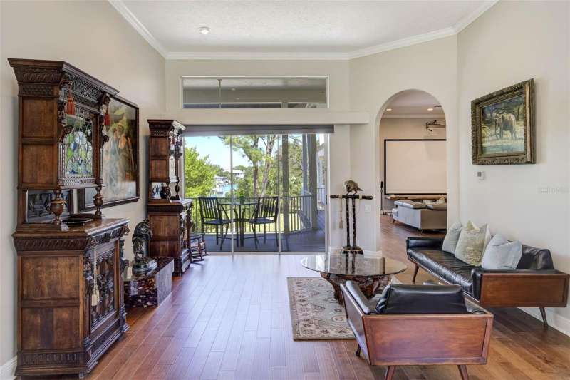 Experience the charm of this Crystal Beach PRIVATE, SPACIOUS HOME WITH DEEP WATER BOATING! This beautifully designed 4-bedroom, 3-bath waterfront home offering 2,924 square feet of living space. The home is set on boatable water and features a private dock with a 10,000 lb. lift, making it ideal for fishing, boating, or sunset cruises right from your backyard. The property is surrounded by immense privacy, with the backyard opening to a peaceful county preserve, while the lot next door is also available for purchase, creating an even greater opportunity for seclusion or future expansion. Outdoor living is elevated with a fabulous travertine pool deck surrounding the sparkling PebbleTec pool, perfect for enjoying long Florida days in style. Expansive second- and third-story verandas capture tranquil views and coastal breezes, making them the perfect spots to unwind with a morning coffee or evening glass of wine. Inside, soaring 12-foot ceilings flood the home with natural light and a sense of grandeur, while a fully renovated chef’s kitchen combines contemporary finishes with top-of-the-line appliances, ideal for both everyday living and entertaining. Additional highlights include a projector TV setup, creating the perfect space for movie nights or game-day gatherings, and an oversized four-car garage with plenty of room for vehicles, golf carts, water toys, and extra storage. Located in the heart of one of the most desirable and charming Crystal Beach communities, this home embodies the perfect blend of privacy, character, and waterfront living — offering both a timeless retreat and an entertainer’s dream.