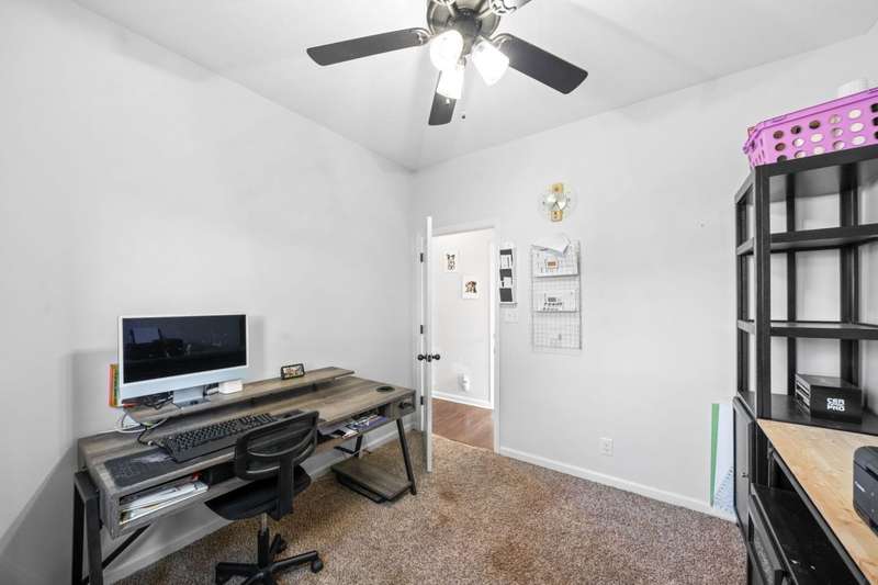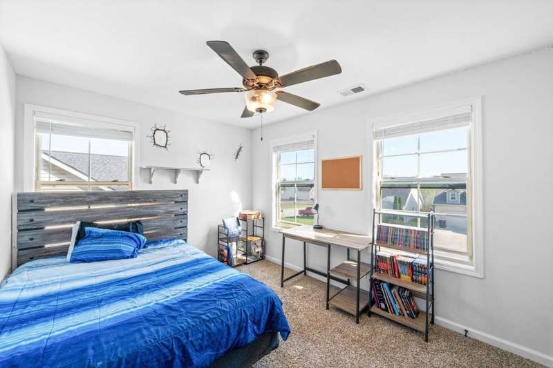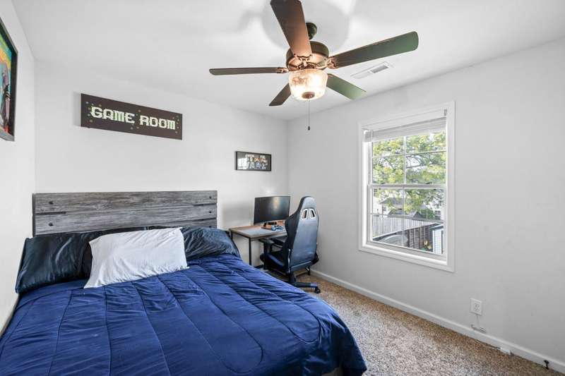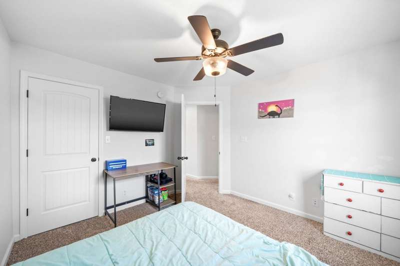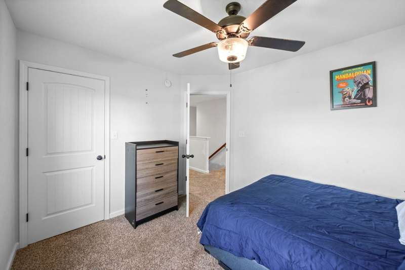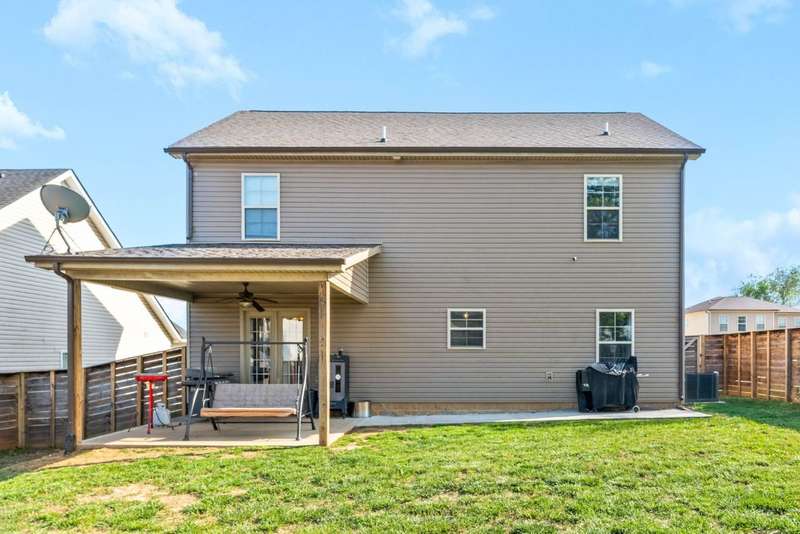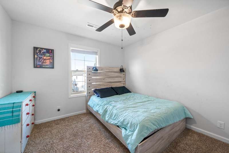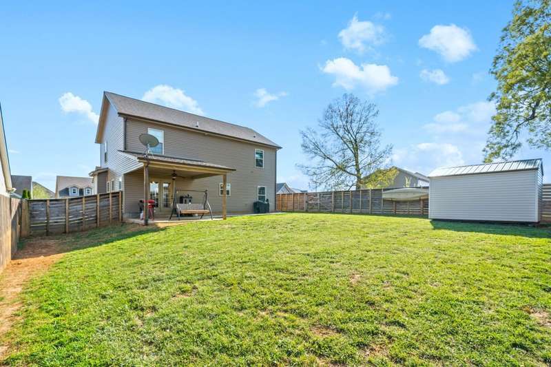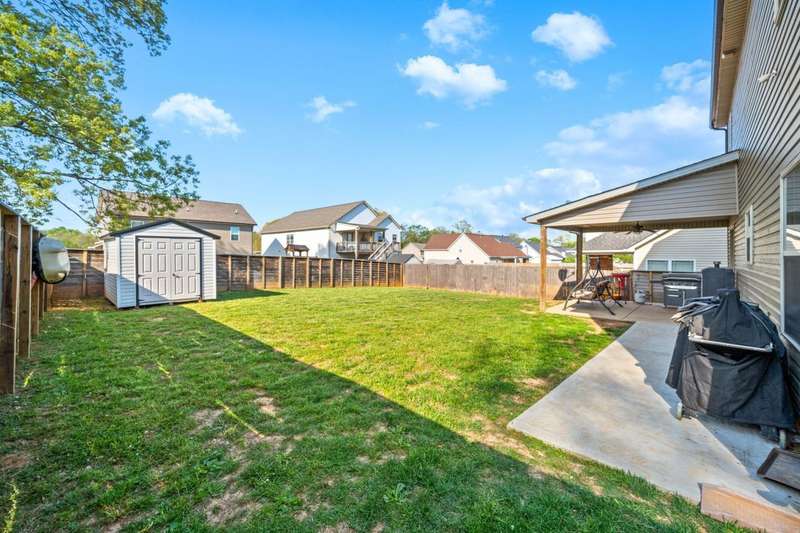 This like new 4-bedroom, 2.5-bathroom home features an open floor plan perfect for entertaining and everyday living. The spacious kitchen flows seamlessly into the living and dining area, creating a warm, inviting space. Upstairs, you will find four generously sized bedrooms, including a private primary bedroom with a walk-in closet and spa like ensuite. No lugging laundry baskets up and down with your spacious upstairs laundry room! Downstairs you will find an additional room perfect for an office or flex space. The fully fenced backyard with storage shed, offers the perfect spot to relax, play or host a BBQ. Conveniently located near shopping, schools, and For Campbell, this home combines comfort with unbeatable location!