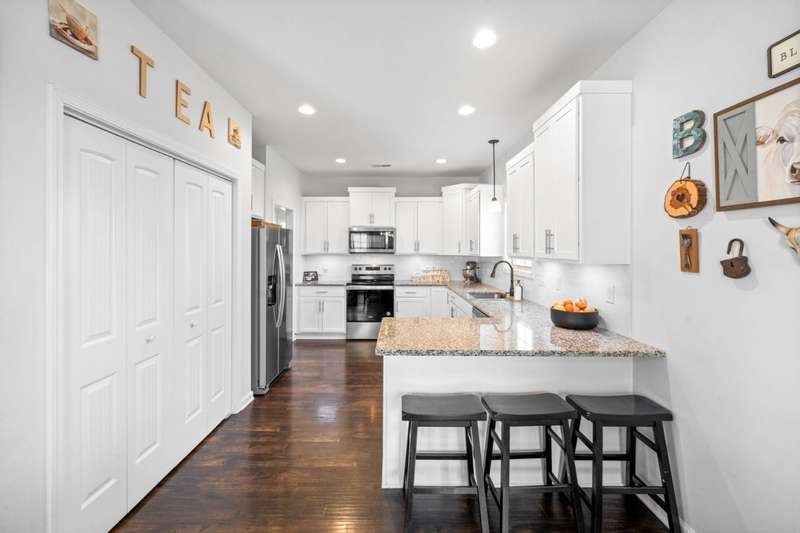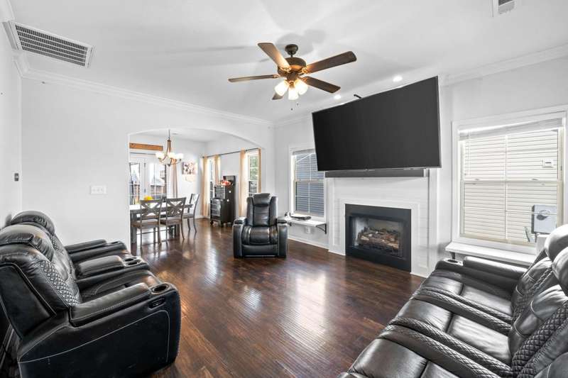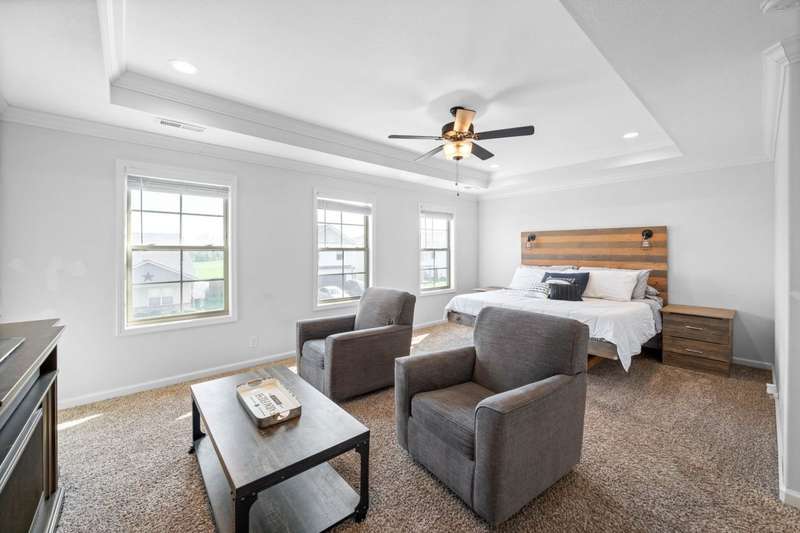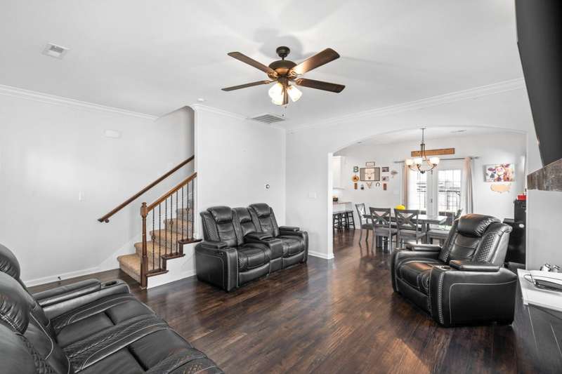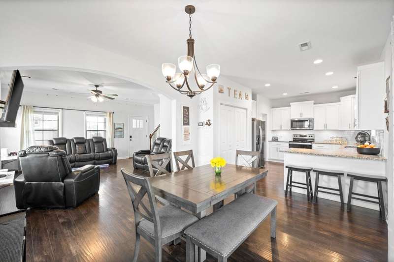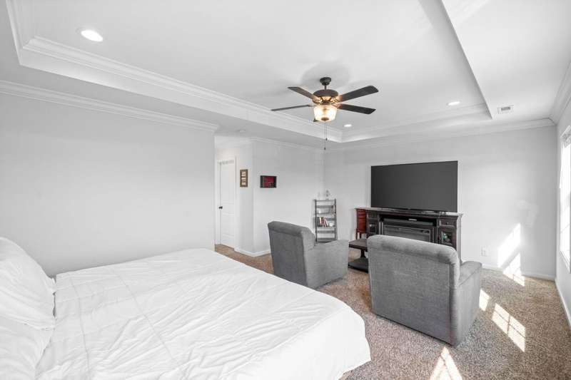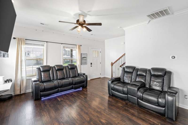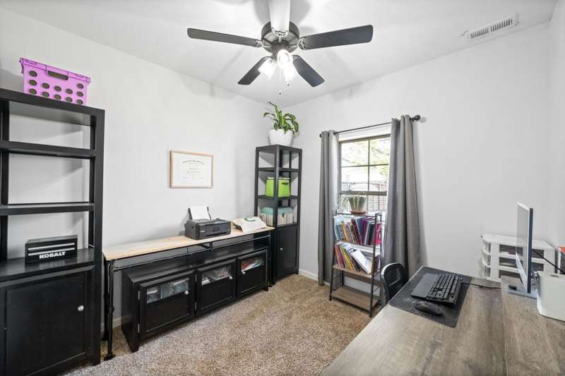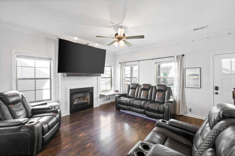 This like new 4-bedroom, 2.5-bathroom home features an open floor plan perfect for entertaining and everyday living. The spacious kitchen flows seamlessly into the living and dining area, creating a warm, inviting space. Upstairs, you will find four generously sized bedrooms, including a private primary bedroom with a walk-in closet and spa like ensuite. No lugging laundry baskets up and down with your spacious upstairs laundry room! Downstairs you will find an additional room perfect for an office or flex space. The fully fenced backyard with storage shed, offers the perfect spot to relax, play or host a BBQ. Conveniently located near shopping, schools, and For Campbell, this home combines comfort with unbeatable location!