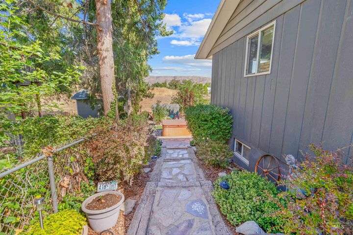 Welcome to this beautifully maintained 3-bedroom, 2-bathroom home, situated to capture stunning valley views from the front yard and windows. This well cared for property boasts numerous updates and has been meticulously maintained throughout. Step out of your walkout basement to relax year-round on the beautifully designed patio or in the outdoor hot tub—a perfect way to unwind under the stars. The fully fenced backyard provides security and space for pets or entertaining guests. Whether you're enjoying the scenic views from the front or the peaceful privacy of the backyard, this home offers a perfect blend of tranquility and convenience. To top it all off, enjoy peace of mind with a completed home and septic tank inspection! Don't miss this move-in ready gem with charm, space, and serene settings to match.