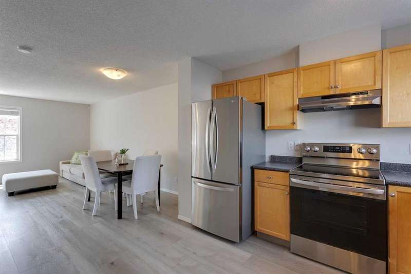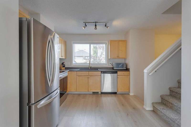 Welcome to this charming townhome nestled in the coveted Mosaics of McKenzie Towne. From the moment you step inside, you’ll love the new vinyl plank flooring, neutral tones, and an abundance of natural light beaming in through the windows. The thoughtfully designed main level has a modern open concept floorplan that seamlessly flows from the living room, to the dining area and on to the kitchen creating an inviting atmosphere that’s perfect for both relaxation and entertaining. The kitchen features newer stainless steel appliances, natural maple shaker cabinetry, new silgranit sink and faucet (ideally overlooking the backyard) and a separate pantry. Upstairs you’ll find 2 large bedrooms, on opposite ends of the hallway, each with their own walk in closets, and conveniently separated by a 4 pc bathroom offering plenty of counter space and large linen closet (or extra storage). The 2nd floor is rounded out by an additional “flex” area, perfect for a home office, reading area or play room. The lower level features a large utility room and laundry area as well as access to your attached garage. This is no ordinary single garage….it may have a single door, but the inside measures larger than some double garages…allowing for lots of extra storage (bikes / sports equipment), a work bench and a vehicle / motorbike or both! What sets this unit apart from most other townhouses is the private fenced backyard ….the perfect place to unwind after a long day! And if that isn’t enough….this home is in an ideal location within walking distance to schools, parks and playgrounds and a wide array of dining and shopping options, while also providing easy access to major roadways making it a breeze to get around. This townhouse offers a great opportunity to live in a thriving community, with everything you need at your fingertips. Be sure to book your showing today!