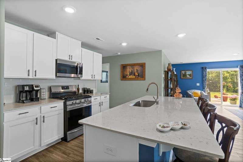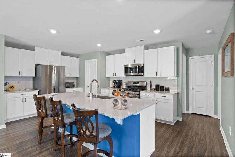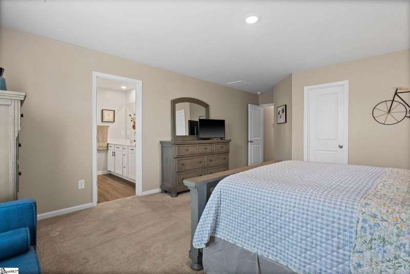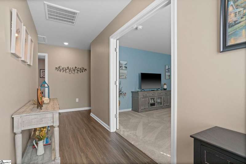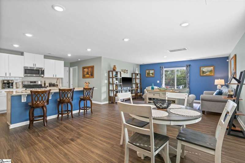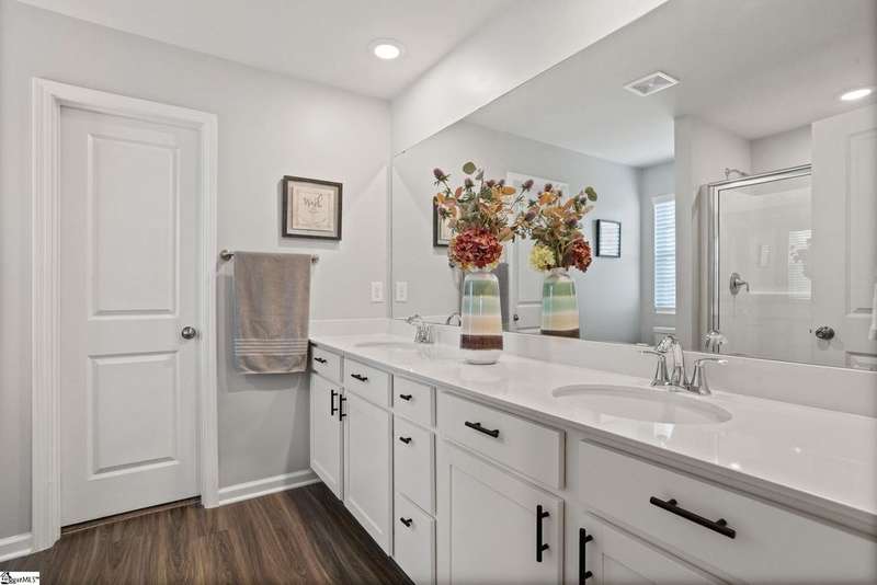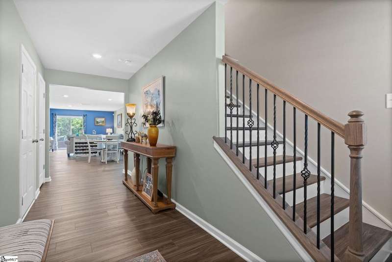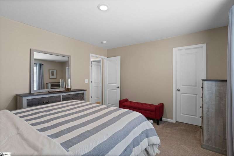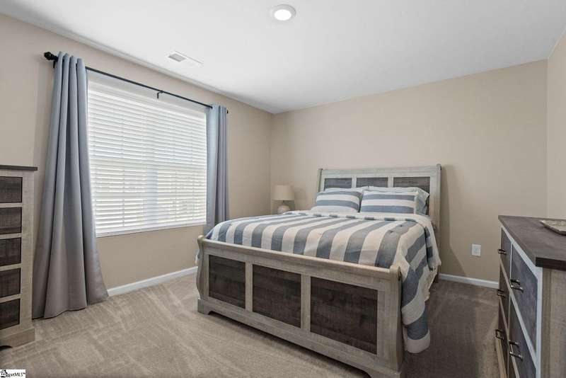At 224 Anna Gray Circle, everything feels fresh and thoughtful. This home has barely been lived in and it shows in the best way. From the moment you pull into the drive, the Craftsman-style details give you a sense that something special is waiting inside. Step through the front door and the open floor plan unfolds beautifully. The updated luxury vinyl plank flooring sets the stage with a soft, modern look that's also incredibly durable. The kitchen is wide open and anchored by a massive work island. It's the kind of space where breakfast is unrushed, kids finish homework while you prep dinner, and coffee just tastes better. Stainless appliances, sleek updated hardware, and plenty of cabinets keep things both stylish and functional. There's even room for a long dining table, so holidays and gatherings will feel effortless. Natural light floods the entire main living area, pouring in through generously sized windows. Notice the Bali Custom blinds. The family room is spacious enough for an oversized sectional and that big screen you've been eyeing. Just off this space is access to the backyard. And it's a backyard worth seeing. The sellers added an 18x18 paver patio?perfect for evening grilling, container gardens, or a few Adirondack chairs under the stars. The iron fencing adds elegance without blocking the view of the treed border. Pets will love having room to roam, and you'll love knowing the lot extends past the fenced section for even more space to explore. Back inside, there's a full bedroom and bathroom on the main floor. It's ideal for guests, aging family members, or anyone who prefers not to climb stairs. Upstairs you'll find four additional bedrooms, including the primary suite. The primary has multiple closets, a walk-in shower, and a double vanity that feels like it goes on for miles. Morning routines just got easier. The guest rooms are generously sized and all feature great closet space. New carpet and thick padding were added, giving everything a crisp, fresh feel. And then there's the rec room. It's huge. Perfect for movie marathons, video games, sleepovers, or just a quiet space to unwind. Whether you want a second family room, a playroom, or a creative workspace, this room gives you the flexibility. Other updates include new hardware throughout, freshly painted walls, and refreshed landscaping. The sellers also installed smart-home technology including a Ring doorbell, interior motion sensors on the main floor, and cameras at both the front and rear of the home. This neighborhood gives you quick access to some of Easley's best spots. You're just minutes from The Silo's, where local restaurants and shops are tucked into a charming gathering space filled with live music and good food. The Easley area is growing fast but still holds onto that small-town feel. Schools are highly regarded, and the sense of community is strong. Best of all, the Blue Ridge Mountains are close enough for Saturday hikes or spontaneous Sunday drives. You're never far from the peace and beauty of South Carolina's lakes and forests. If you're dreaming of a home that's move-in ready, thoughtfully upgraded, and full of style and space, this may be the one.