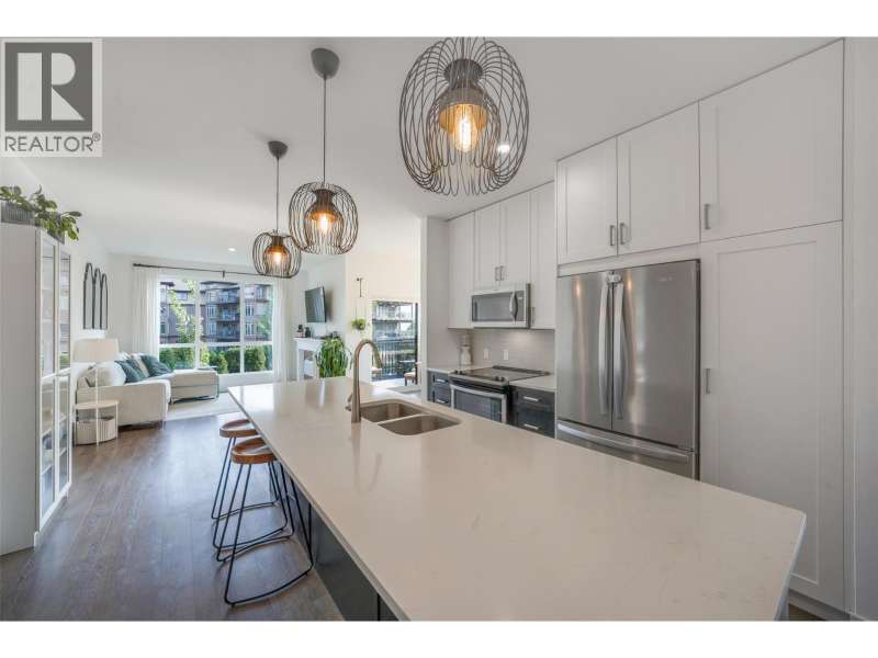 Convenience meets location with this bright 3 bedroom condo at Gellatly Parc! Located just steps to the lake, Gellatly waterfront, West Kelowna Yacht Club and Glen Canyon Regional Park, this bright, corner unit blends the best of Okanagan less than 10 minutes away to shopping, restaurants, wineries and groceries! Inside, you'll find a vibrant, open floor plan spread over approximately 1230 sqft of living space. The kitchen offers a large island with stainless steel appliances and opens to a sun-filled living room with separate dining area for entertaining. Step outside to an oversized balcony with peek-a-boo lake views—perfect for morning coffee, evening sunsets or relaxing with friends after a day at the beach or the CNR/Gellatly Aquatic wharf! The primary bedroom is generous in size, featuring a walk-through closet and a 4-piece ensuite with dual vanities and a glass shower. Two additional bedrooms provide flexibility for family, guests or a dedicated home office space, while a second 4-piece bathroom and a large utility closet off the entry add practicality and storage. This pet- and rental-friendly building makes an excellent investment or full-time home for 1st time buyers, downsizers or young families! Enjoy 1 common property parking stall, just 10 mins up the hill to Westbank town Centre, Big Box Stores & Aquatic Centre & Dog Beach. Have something to sell? Sellers may consider a house on trade! Move in this fall and enjoy endless recreation at your doorstep! (id:7434)