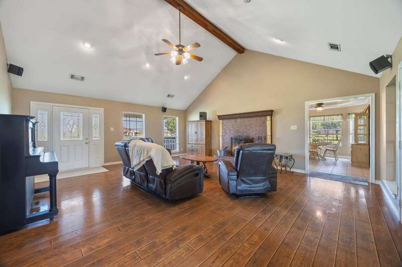 SELLER IS OFFERING A $5K BUYER CONCESSION, NEW SURVEY AND HOME WARRANTY WITH ACCEPTABLE OFFER. Looking for space and want to be close to all of your amenities? This single story, one-owner homehas been well maintained and is perfectly placed on a manicured 2.37 acre lot with a 24 x 24 shop and stocked pond with a dock. Enjoy the peaceful setting from your front porch or covered back deck while taking in the views of the pond and wide open spaces. Inside you will find an updated island kitchen with granite countertops, and newly painted cabinetry. The vaulted wood beam ceiling family room is spacious with a wood burning brick fireplace. The back patio is enclosed and offers multiple use. Primary suite with pampered bathroom features a jacuzzi tub, separate shower, double sinks and 2 walk-in closets. The laundry room has room for a freezer or second refrigerator and has a shower perfect for cleaning up after spending a day working outdoors. Spacious secondary bedrooms, full bathroom and powder bath complete this wonderful family home. Roof replaced 2020, HVAC replaced 2024. Other recent updates include: Two 40 gallon water heaters, hard surface floors in family room and bedrooms, some fresh paint inside and out. NO MUD, PID OR HOA. Close to shopping, dining, entertainment, Lake Ray Hubbard (Rockwall), Lake Tawakoni (Quinlan) and Lavon Lake (Lavon)